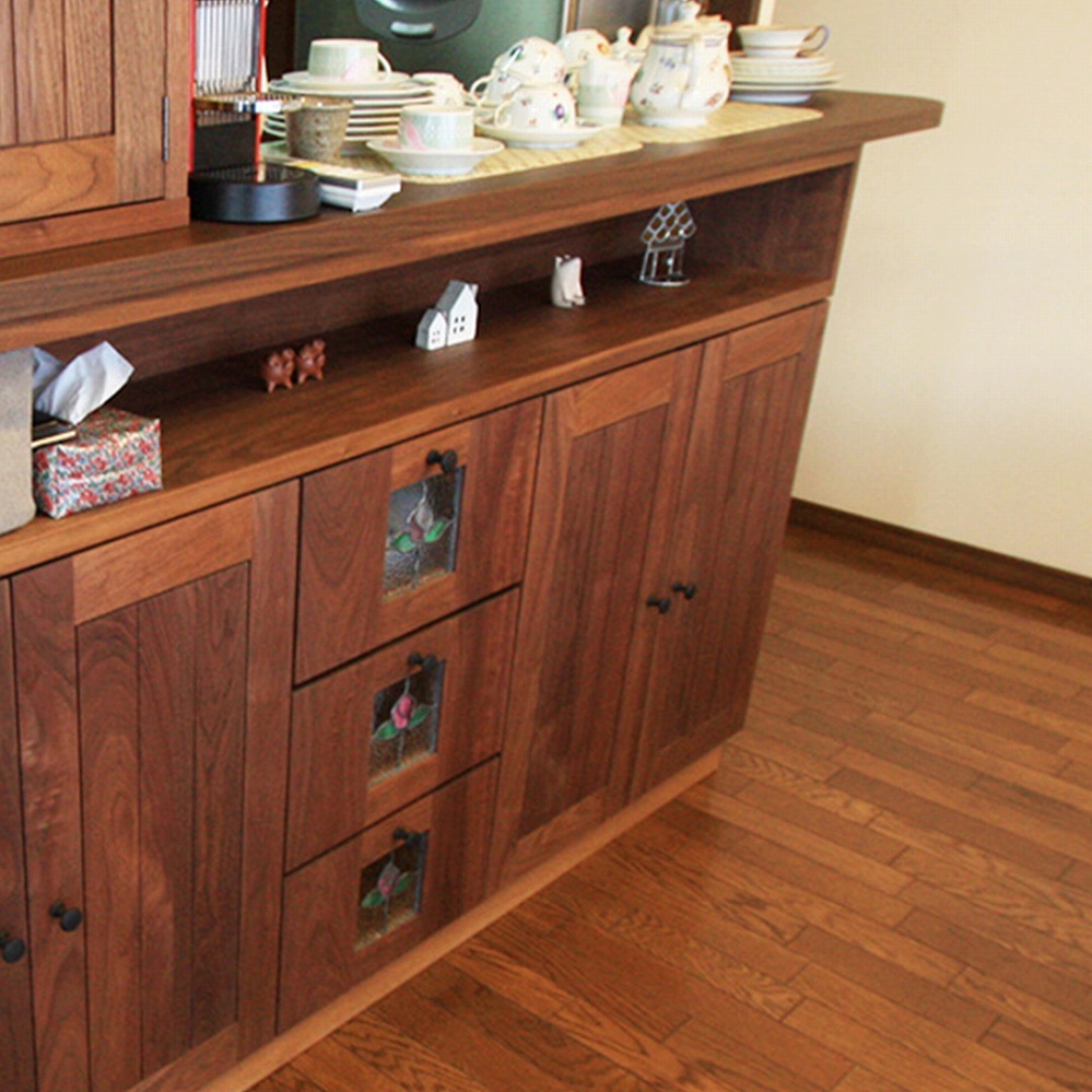 引き出しの小窓には、お客様がご自身で製作されたステンドグラスをはめ込んでいただきました。