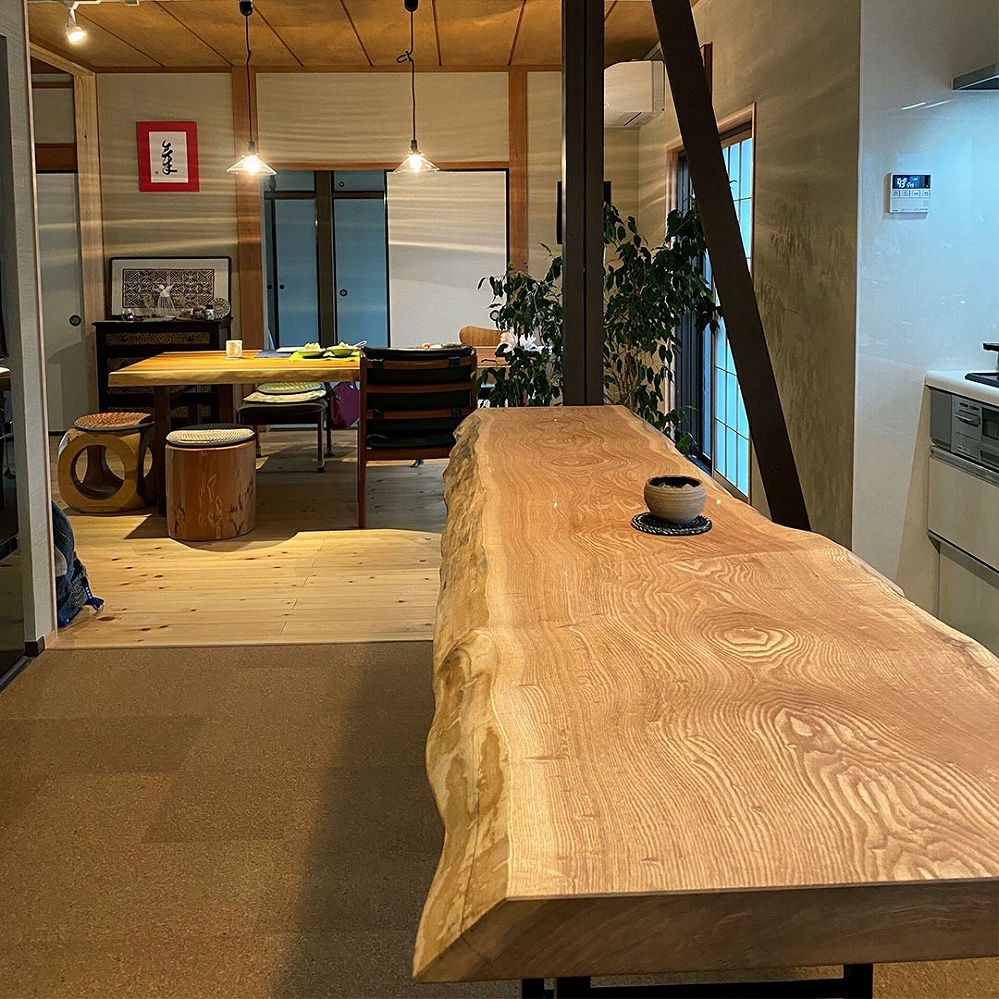 こだわりの詰まった素敵なお家に一枚板を置くと更に一枚板の良さが際立ちます。