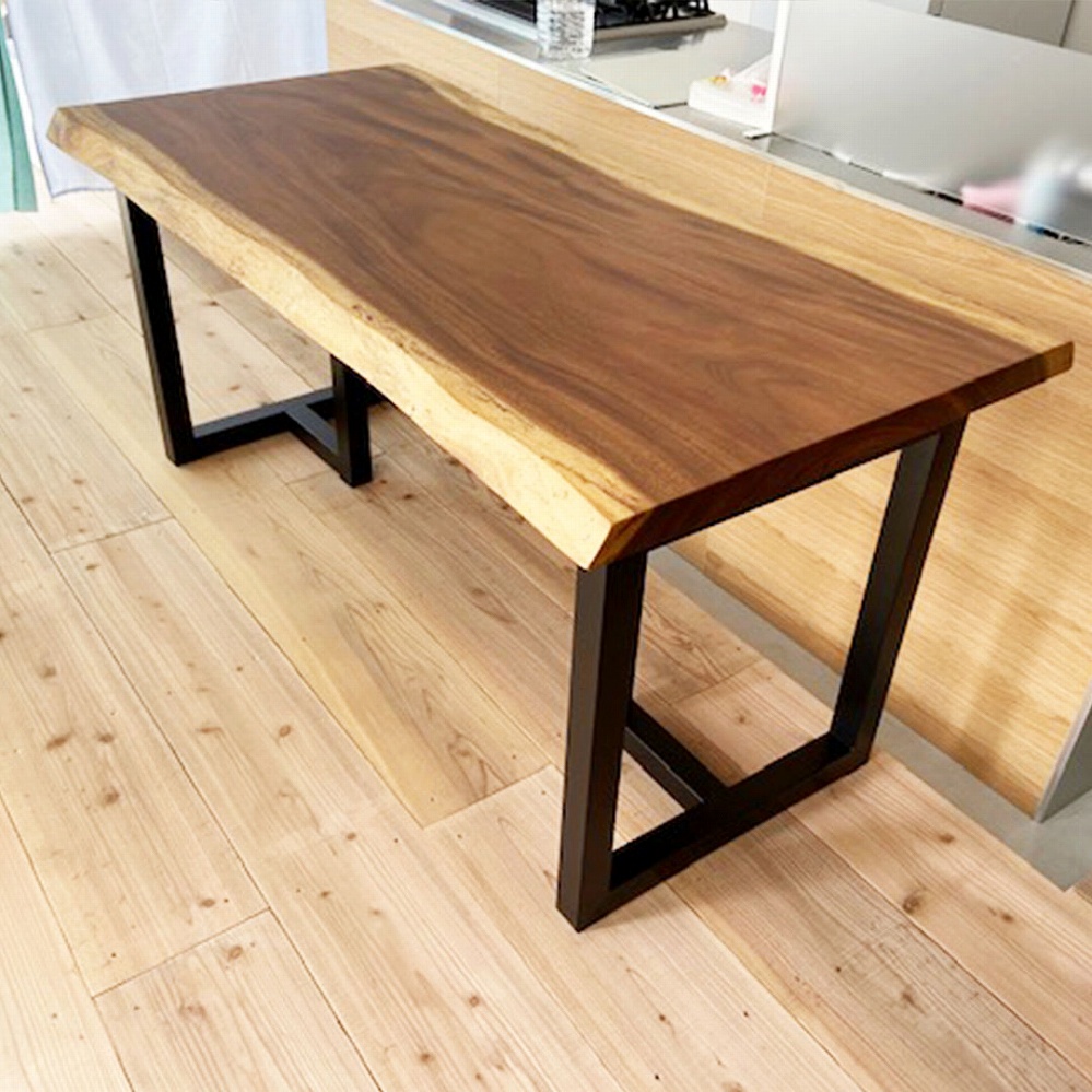 デザイン性のあるアイアンの脚を合わせたことで、ウォールナットの一枚板がよりかっこよく引き立っています。