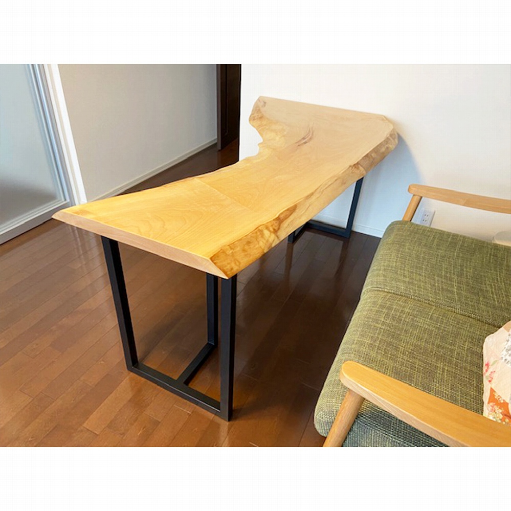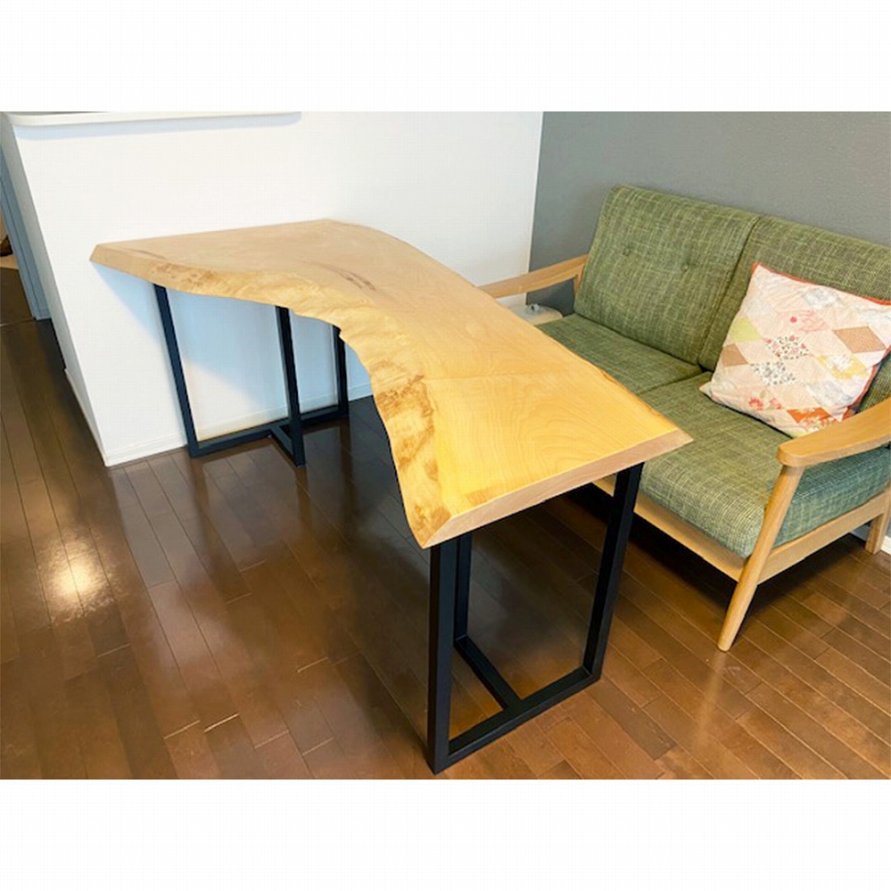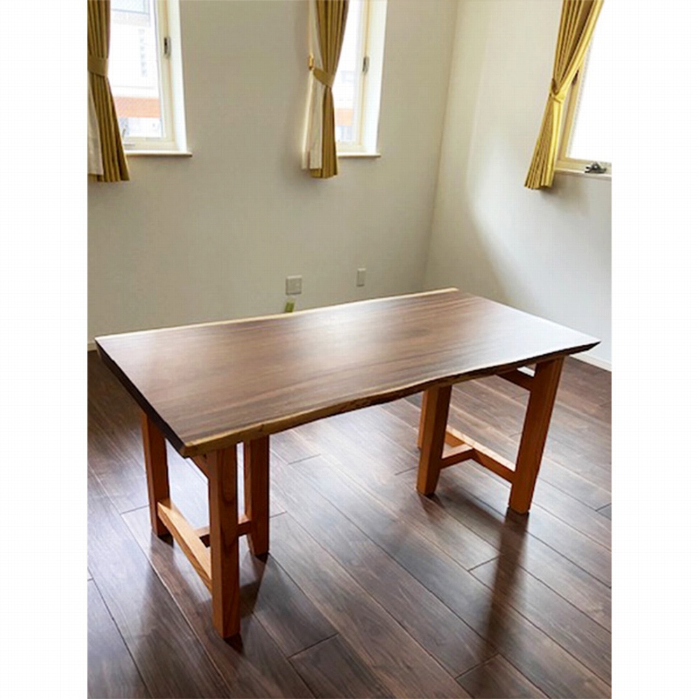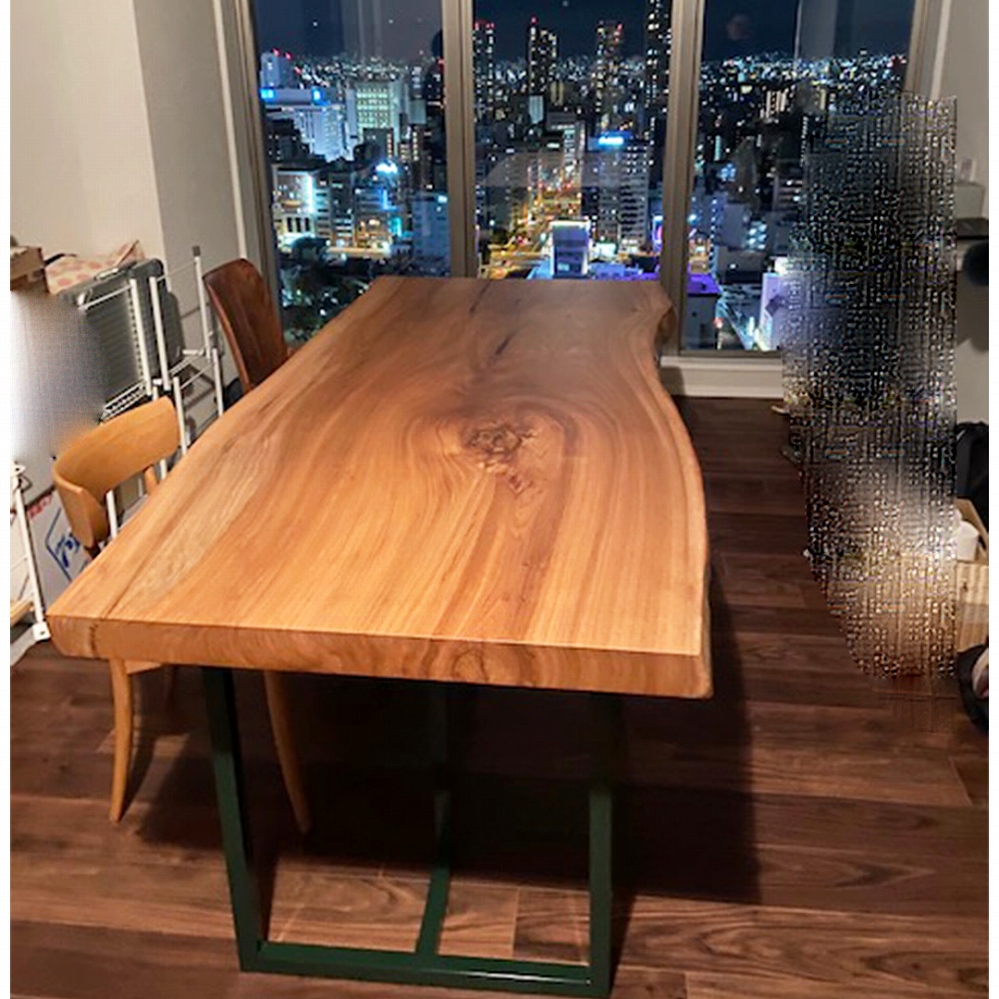 柔らかな木目のモンキーポッドと欅の脚をお届けさせていただきました。