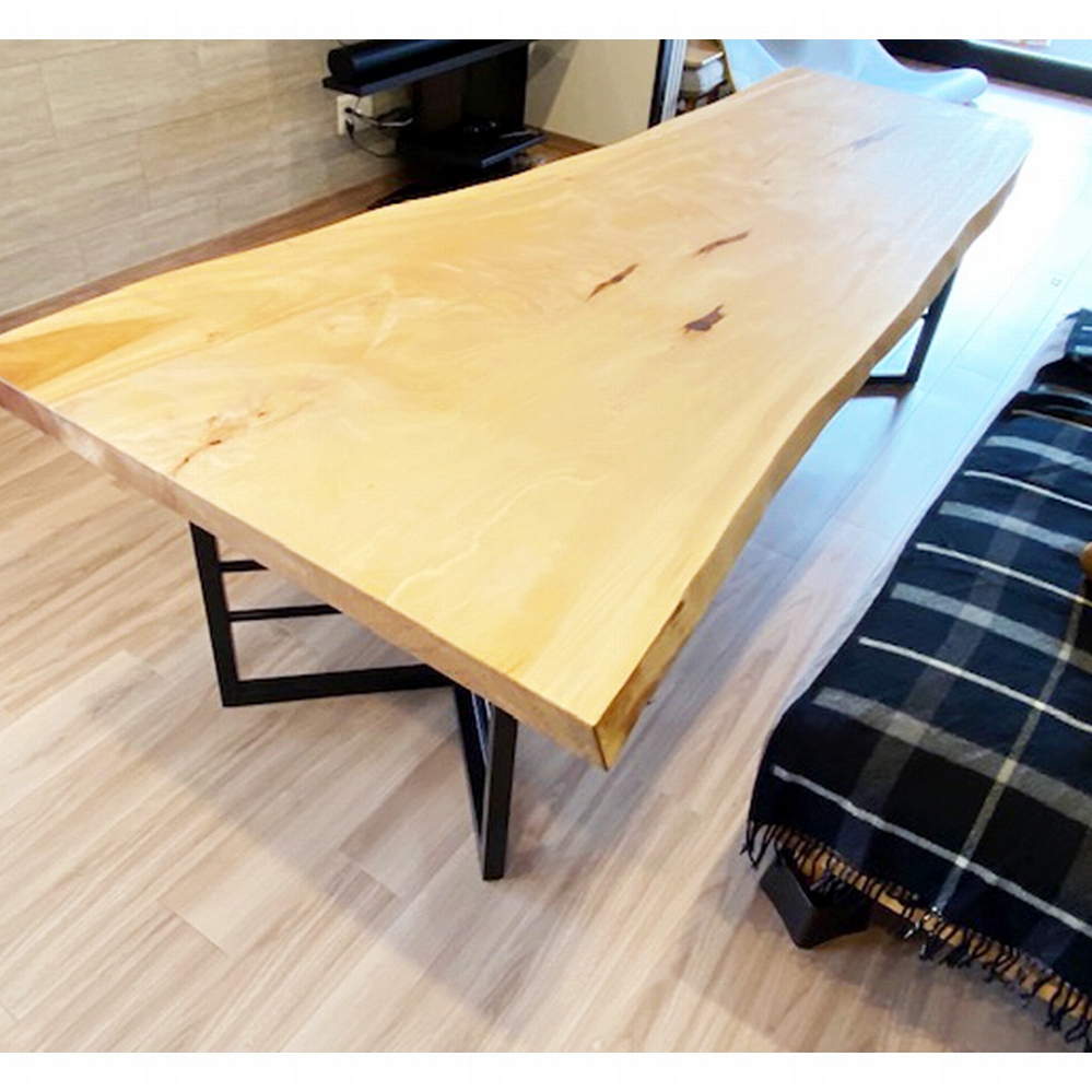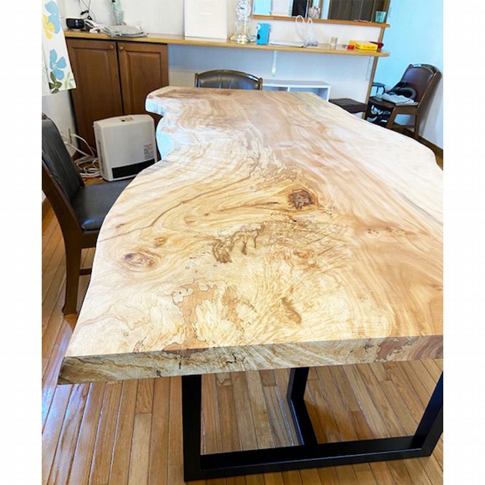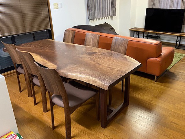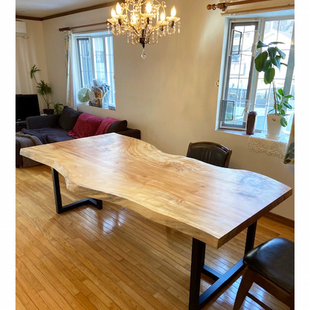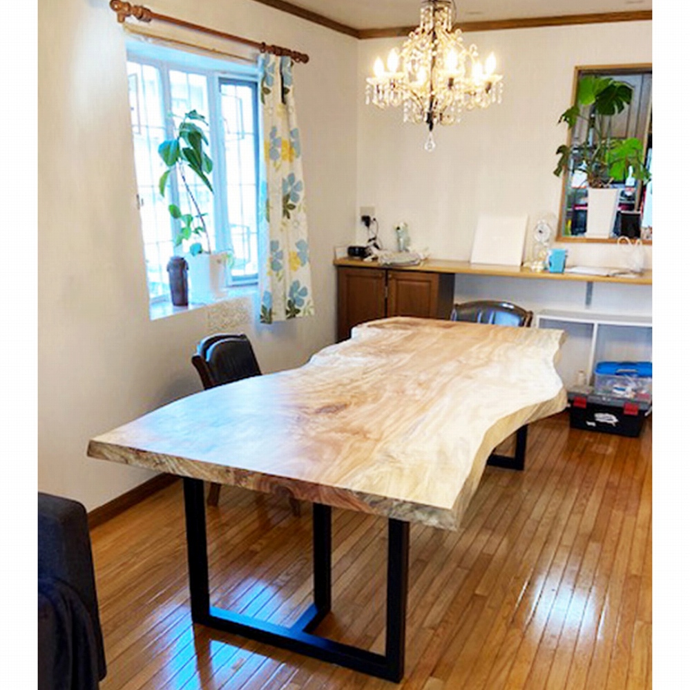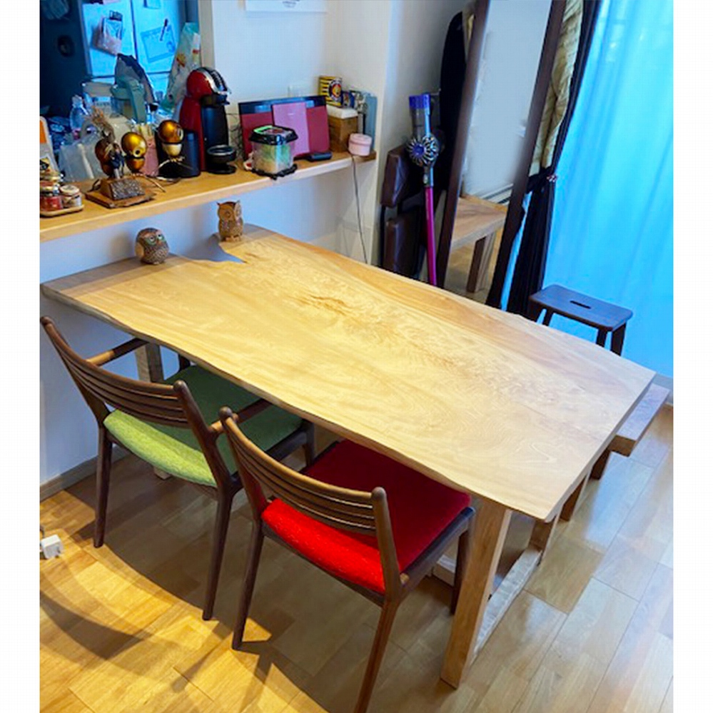 明るいお部屋に、立派なサイズの栃の一枚板をお届けさせていただきました。