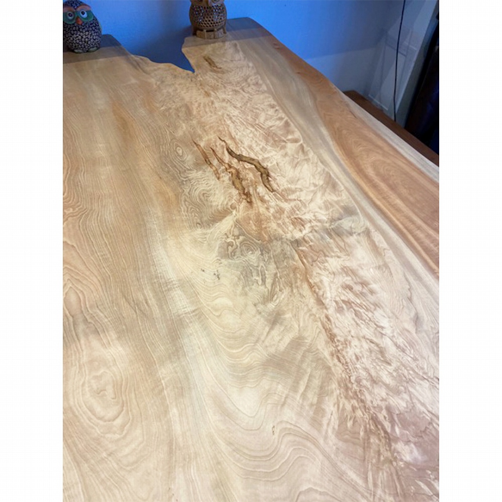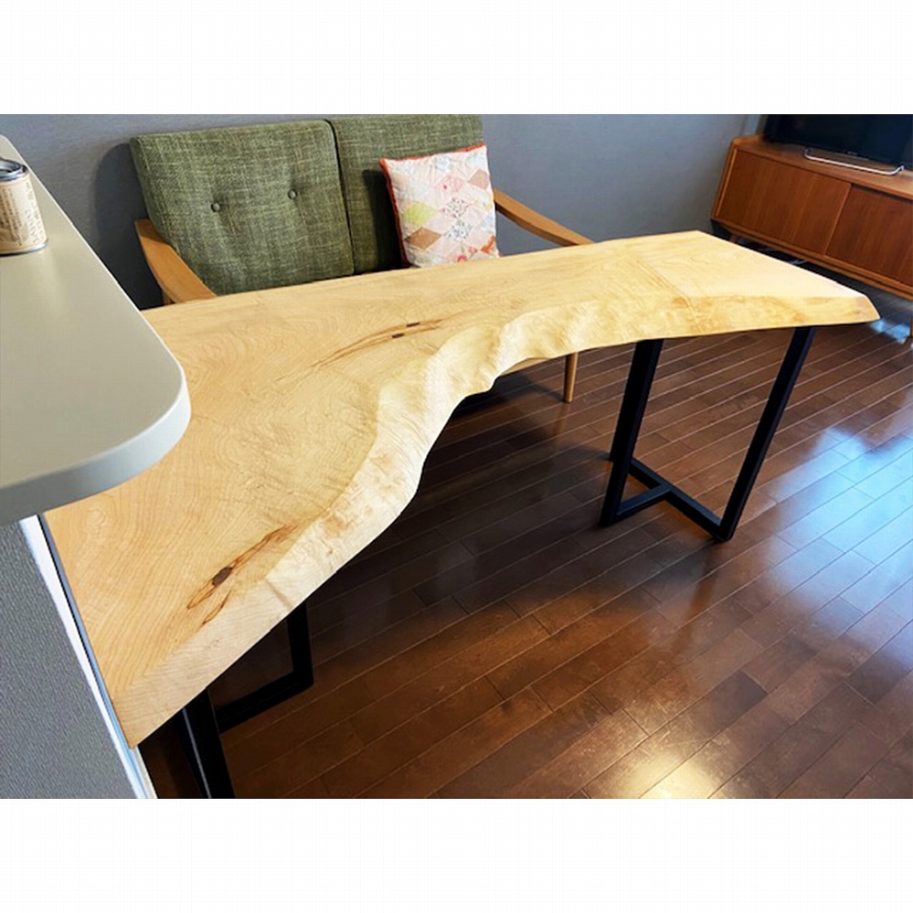 輝くように照るキラキラの杢が特別美しいこの一枚板に毎日癒されてくださいね。