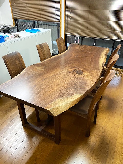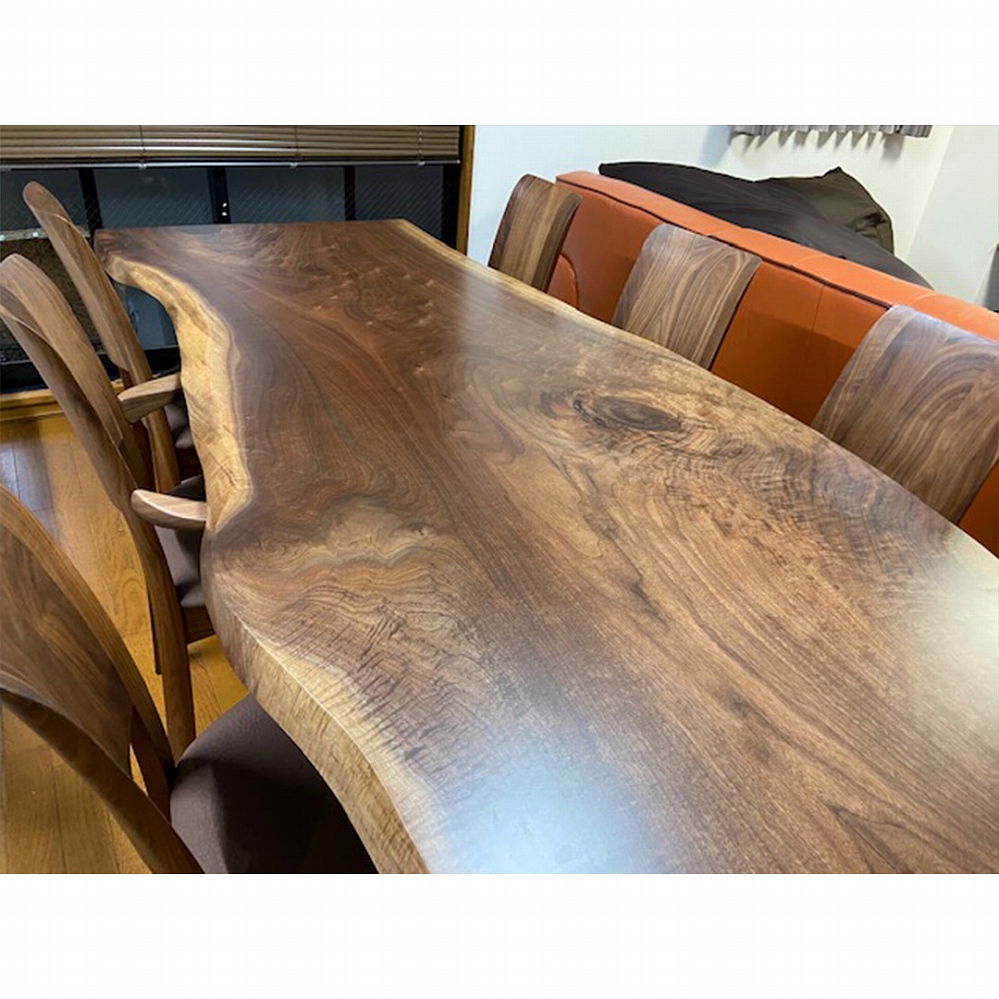 素晴らしく美しい杢がしっかりと入り、さりげない変型がたまらなく格好良いウォールナット材の一枚板をお届けしました。