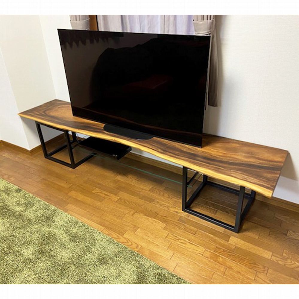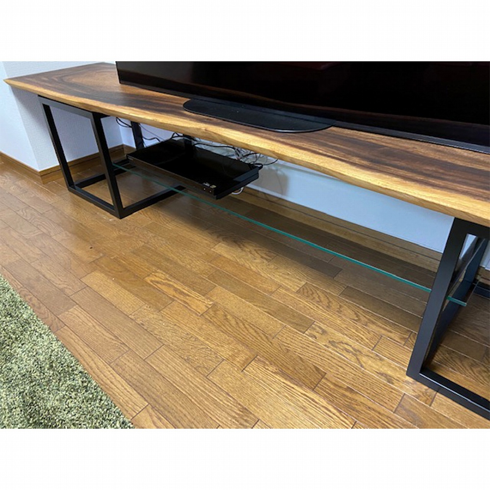 また、モンキーポッドの一枚板で作ったTVボードもとても良いアクセントとなりました。
