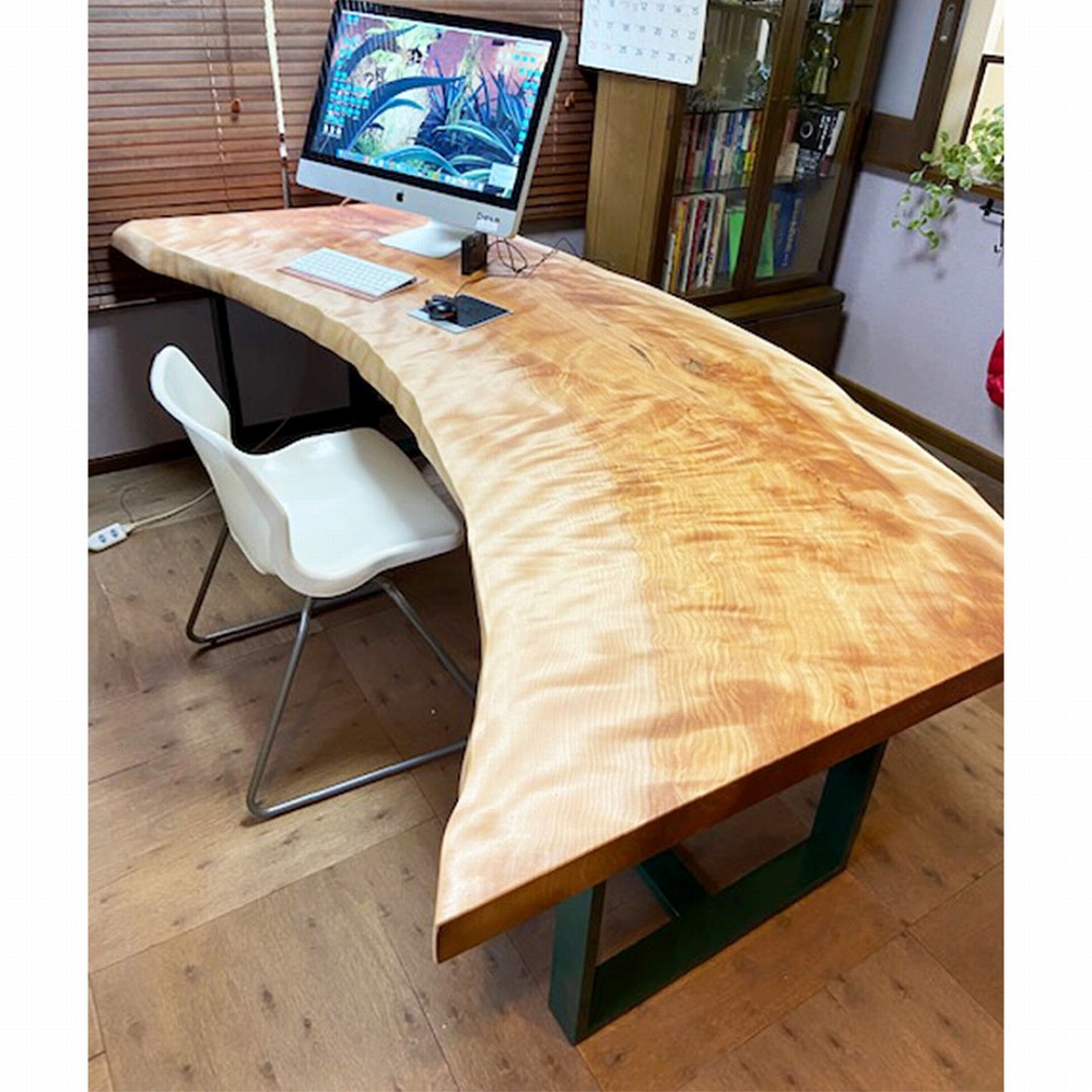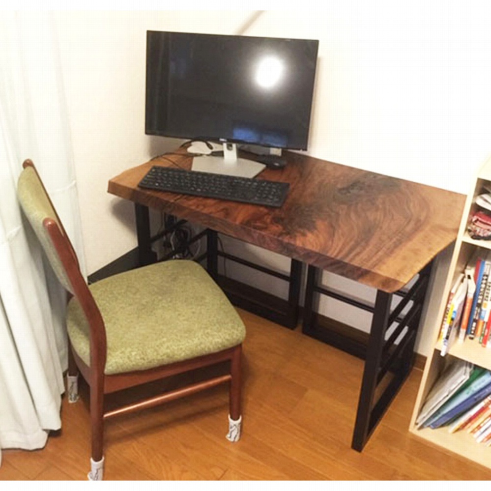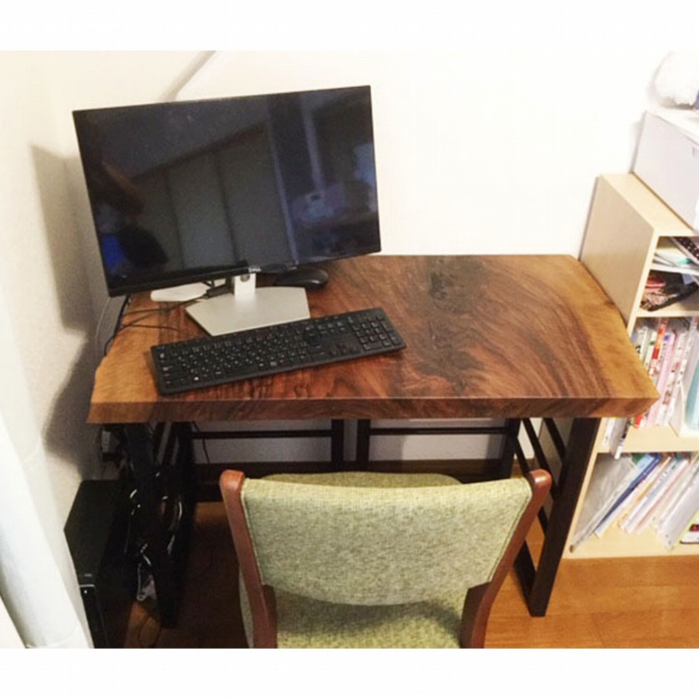 希少材のクラロウォールナット材の一枚板、まさに置いているだけでも格好良いデスクになりました。