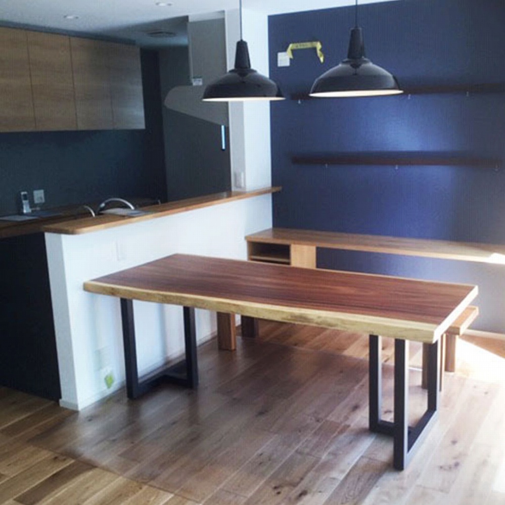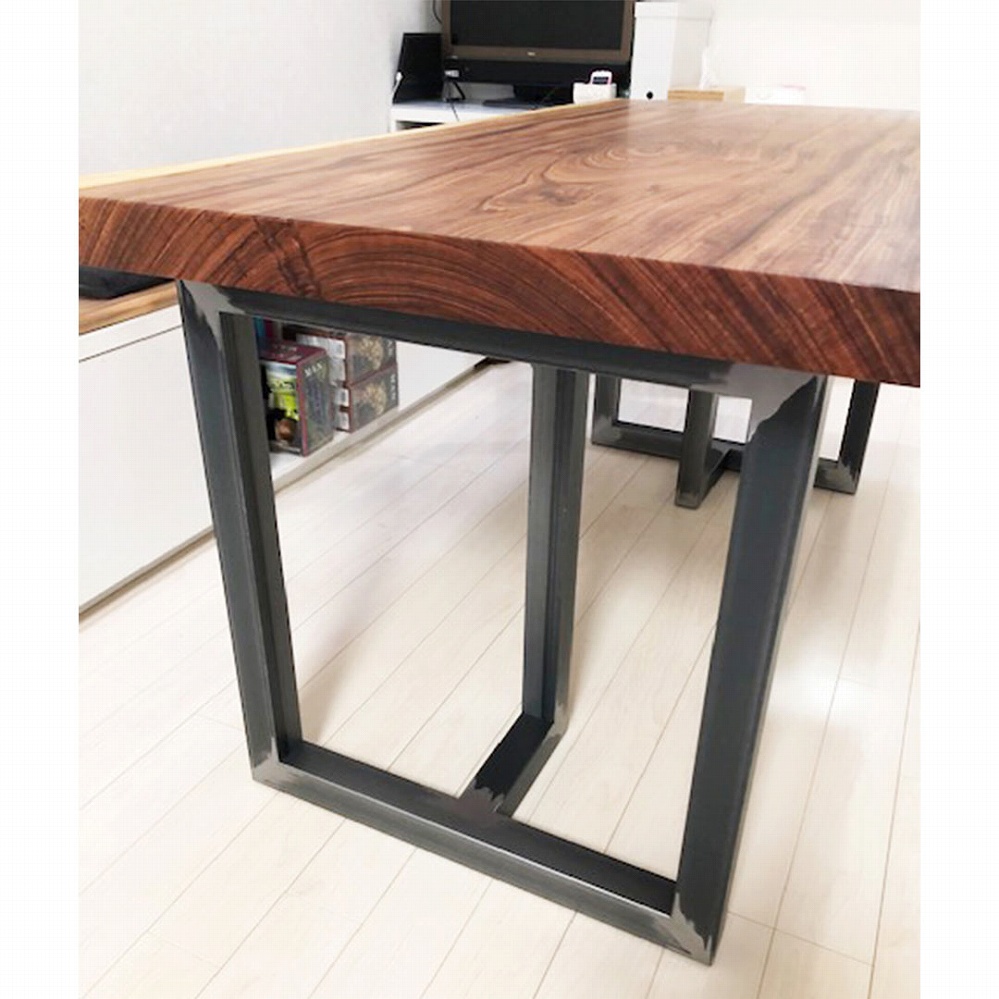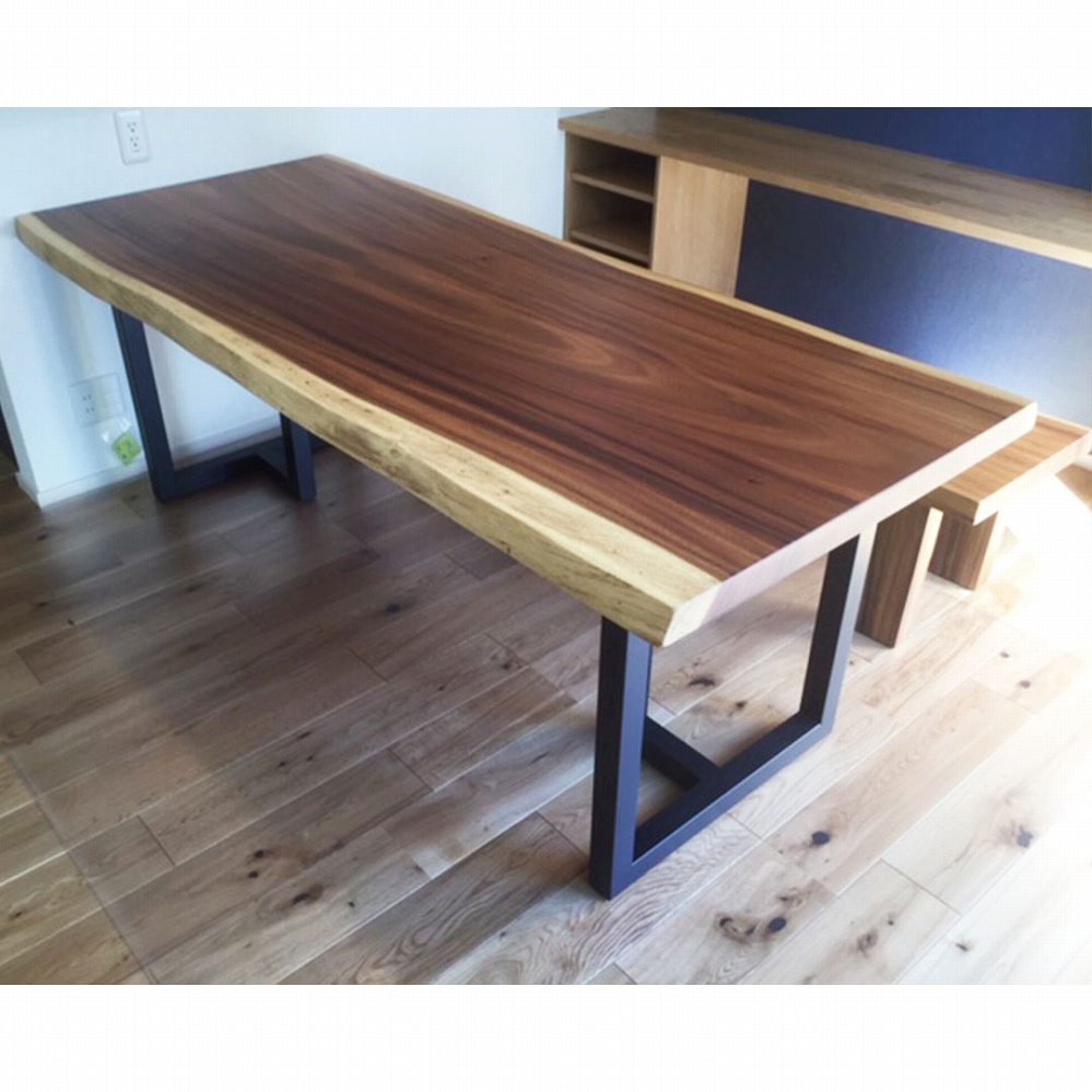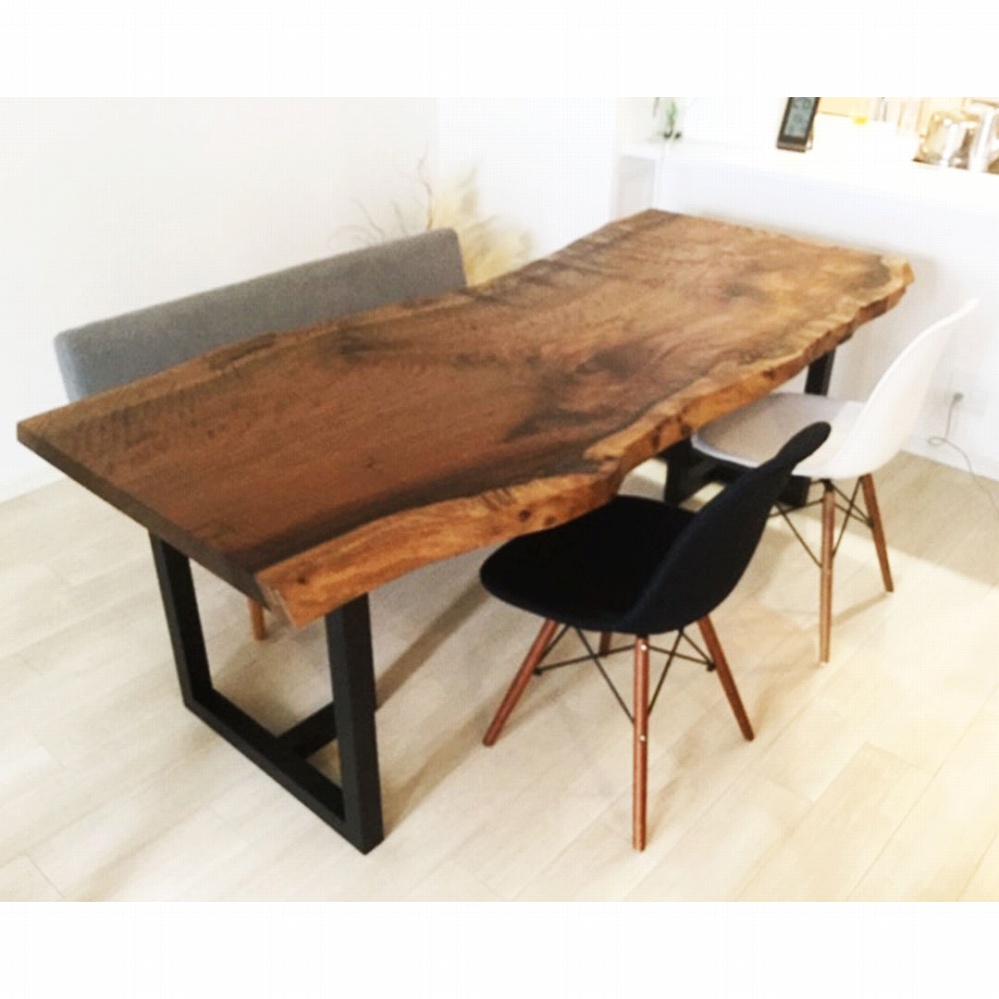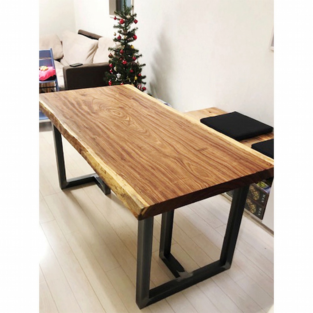 ボリューム感のある一枚板に黒いアイアンの角脚がとても相性が良いです。