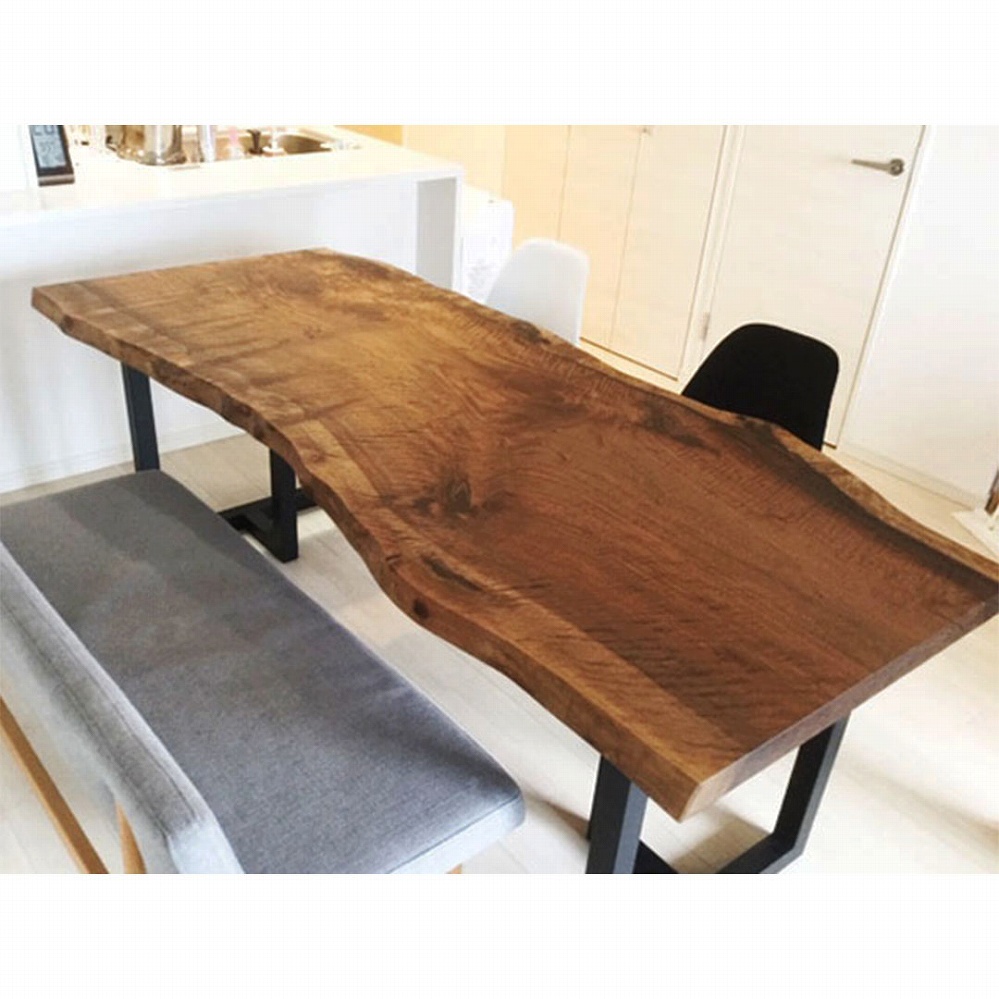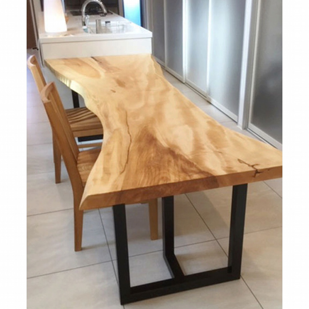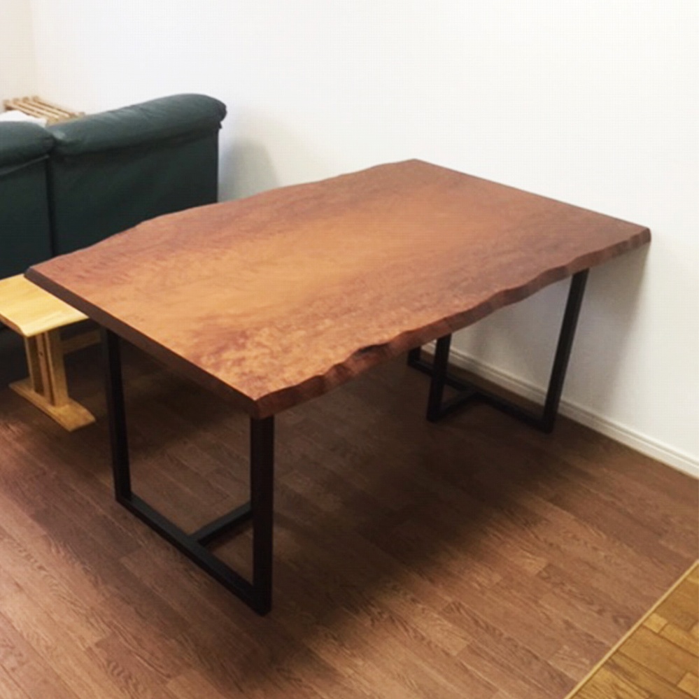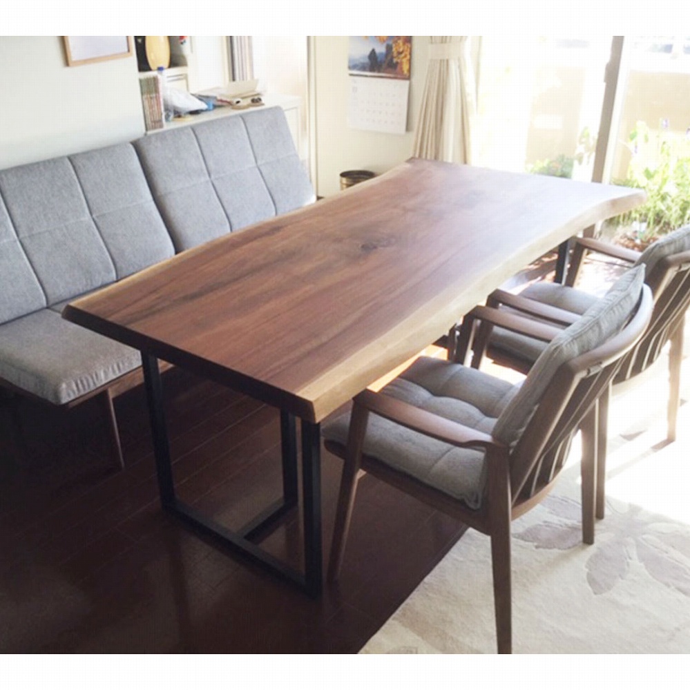 ボリューム感のある一枚板に黒いアイアンの角脚がとても相性が良いです。