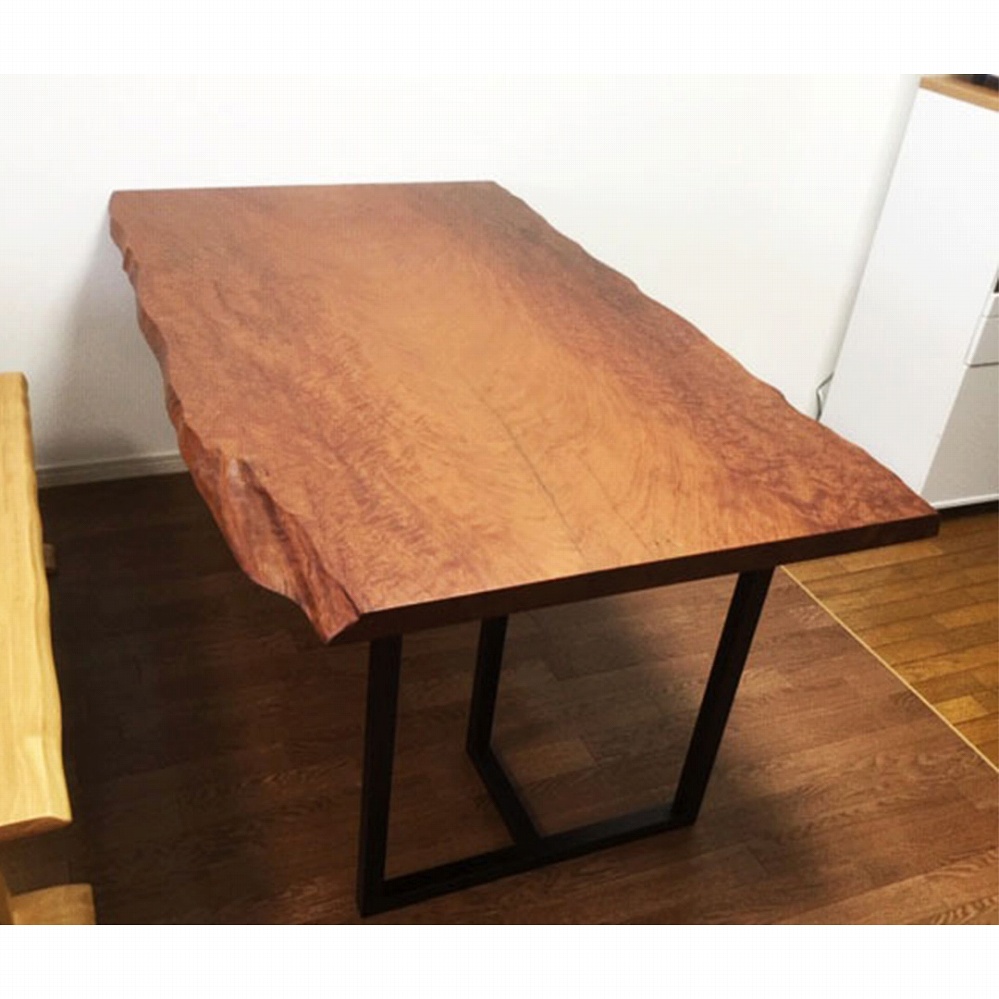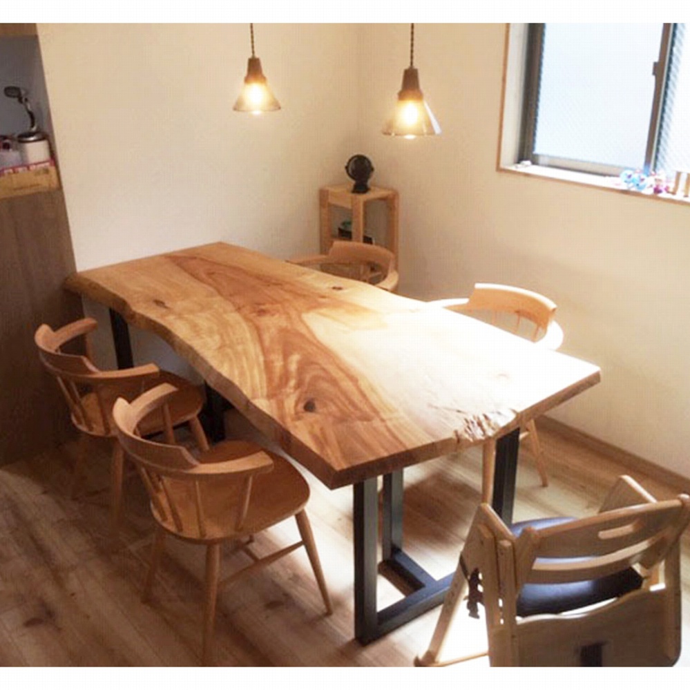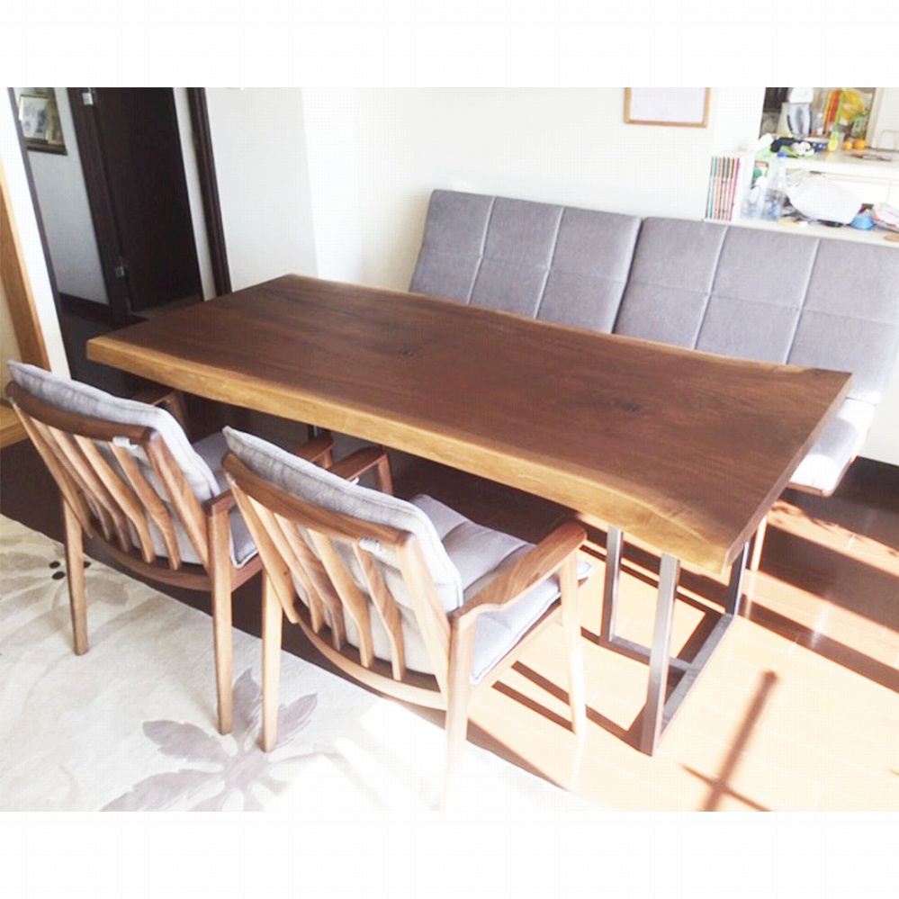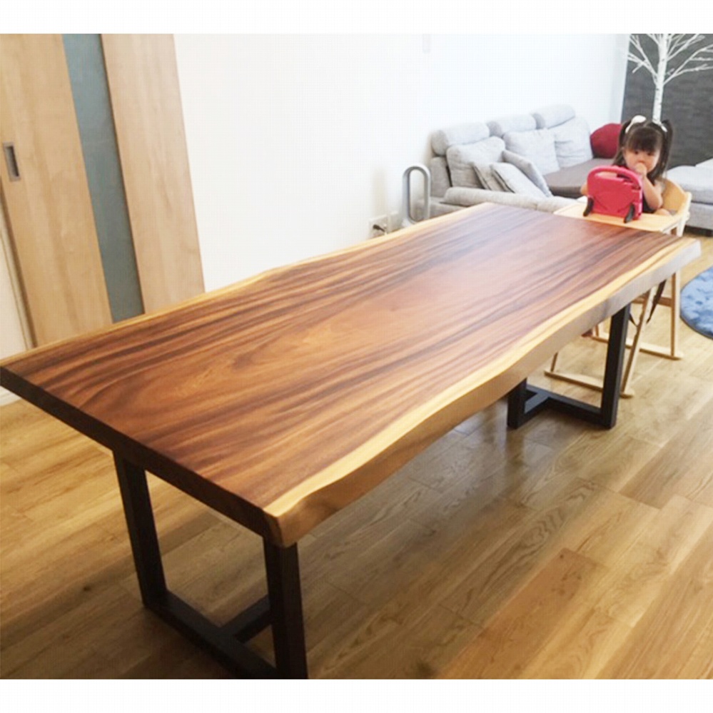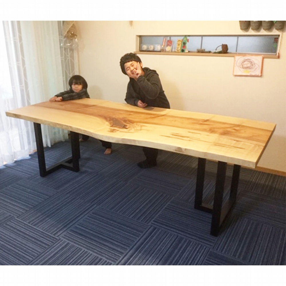 ボリューム感のある一枚板に黒いアイアンの角脚がとても相性が良いです。