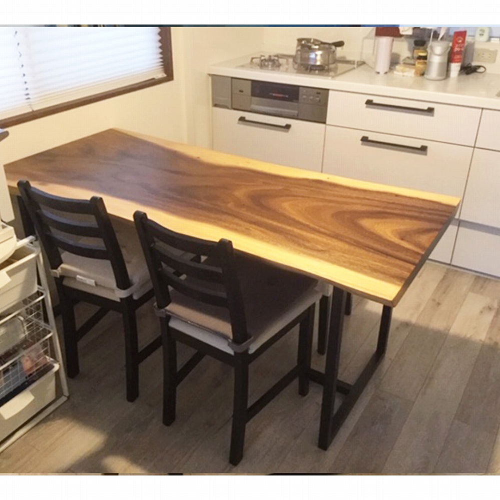 お部屋のスペースに合わせてウォールナット材の一枚板をお届けさせていただきました。