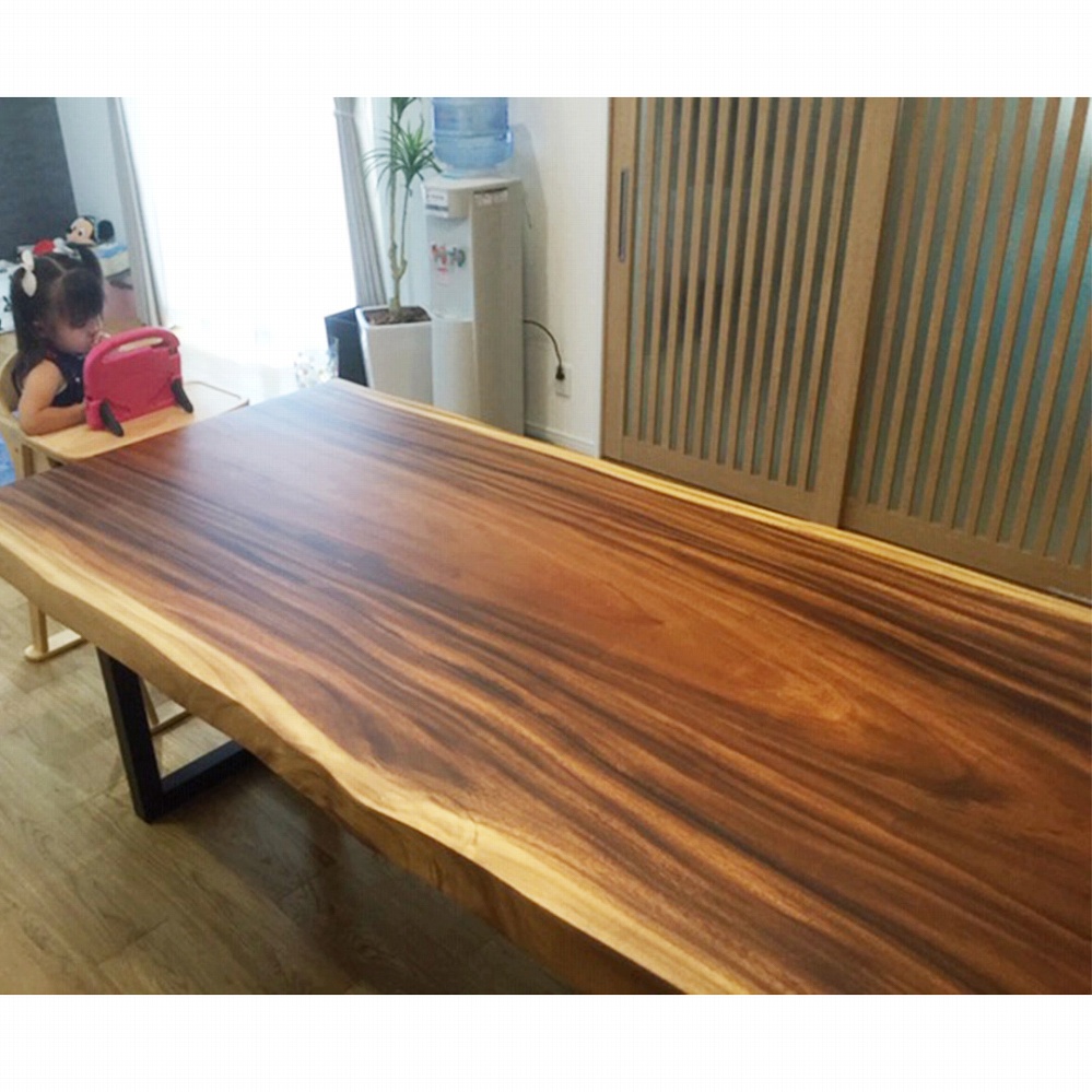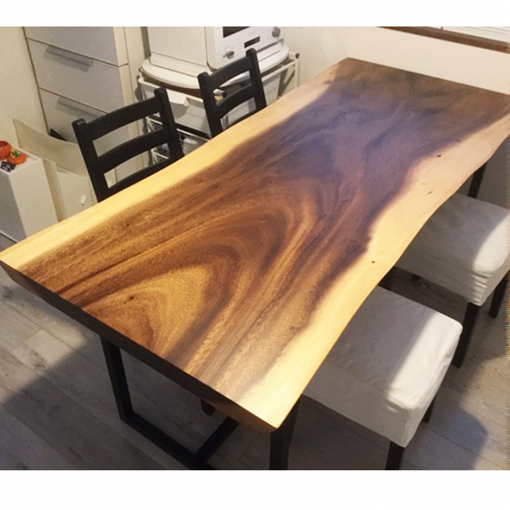 奥には同じくモンキーポッド材の一枚板ベンチもご一緒にお届けさせていただきました。