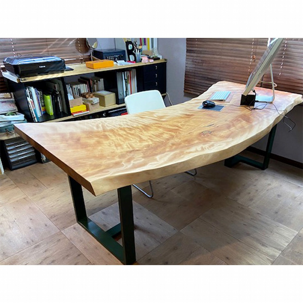 一面に惜しみなく美しい杢が出ている水目(ミズメ)の一枚板をお届けさせていただきました。