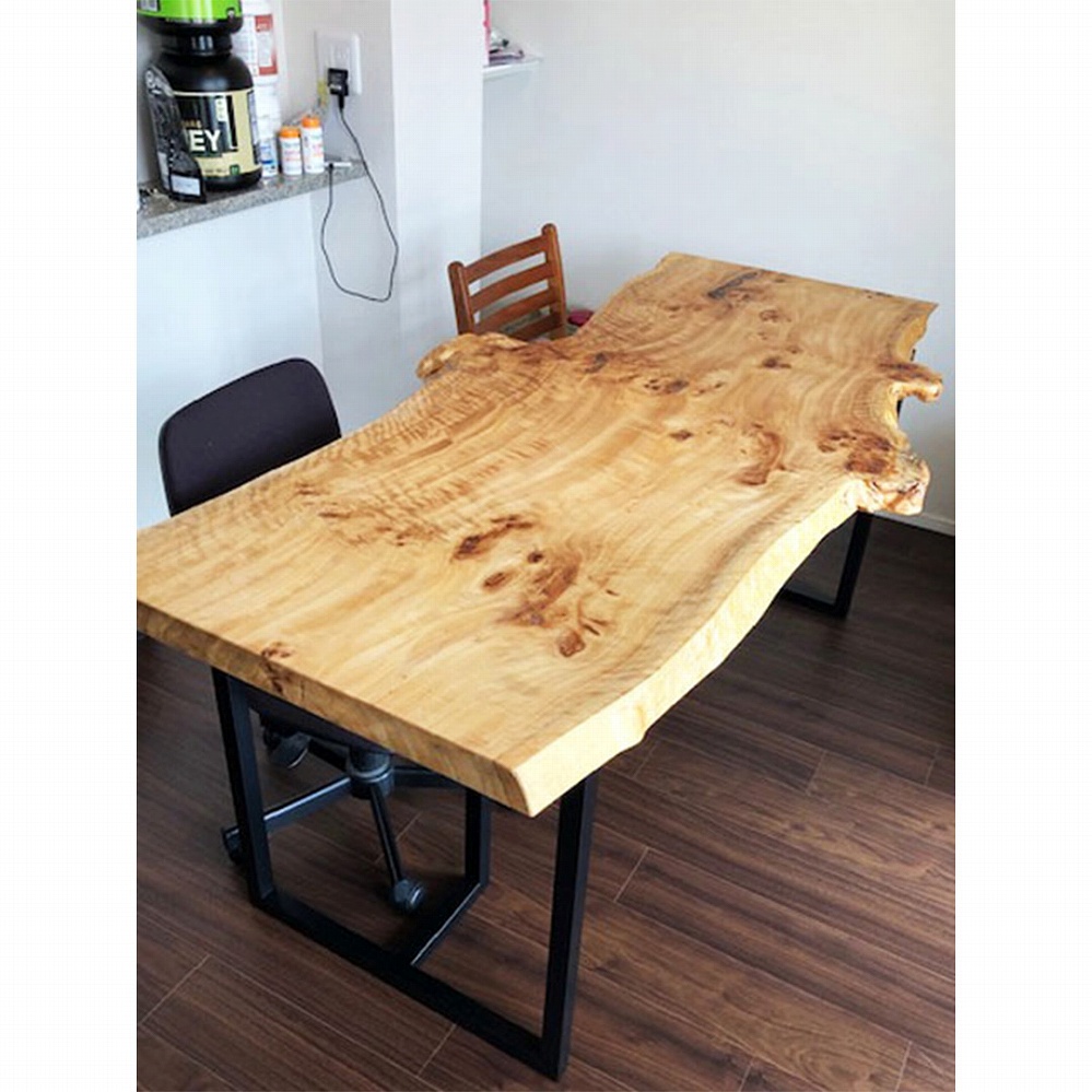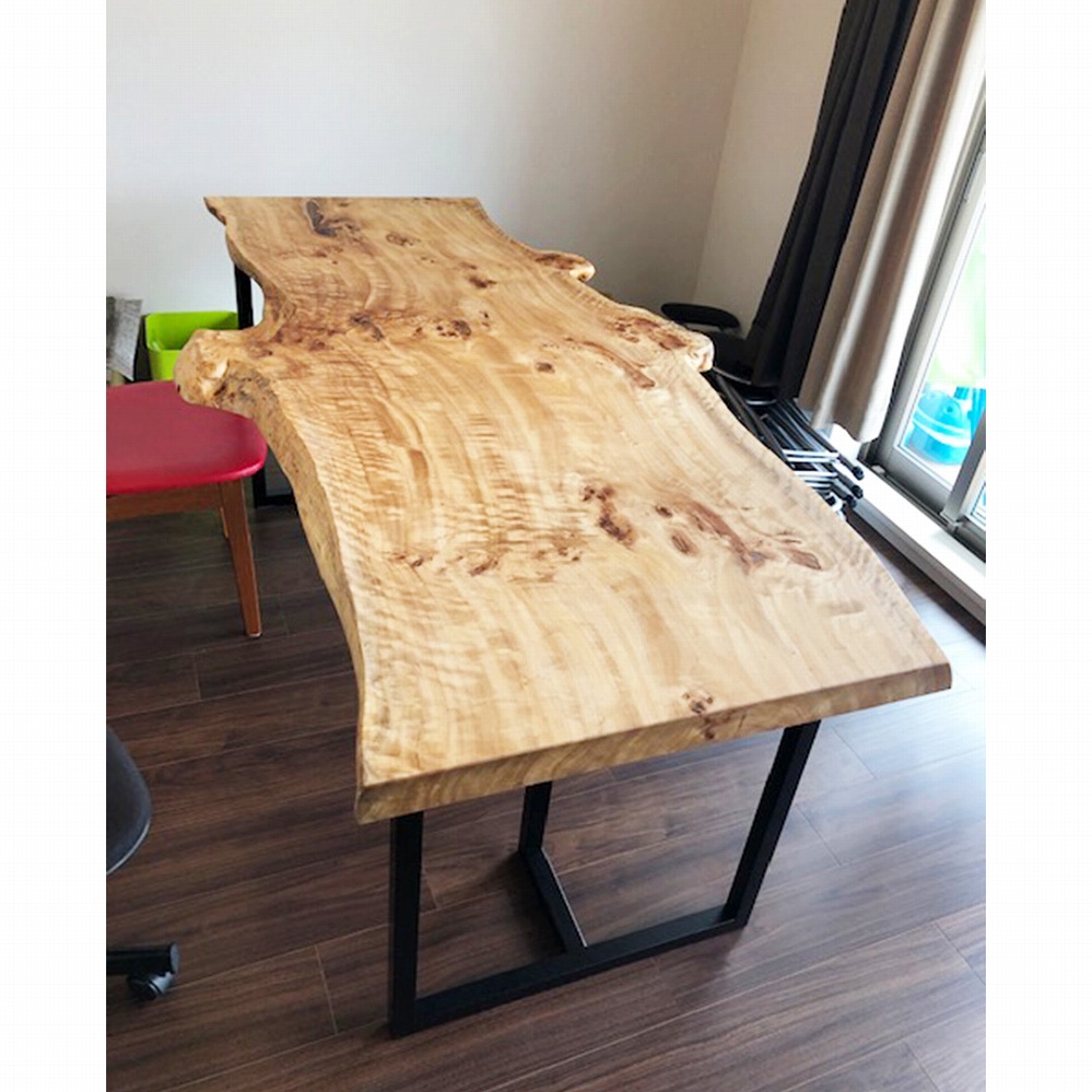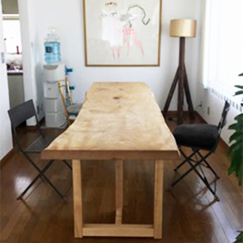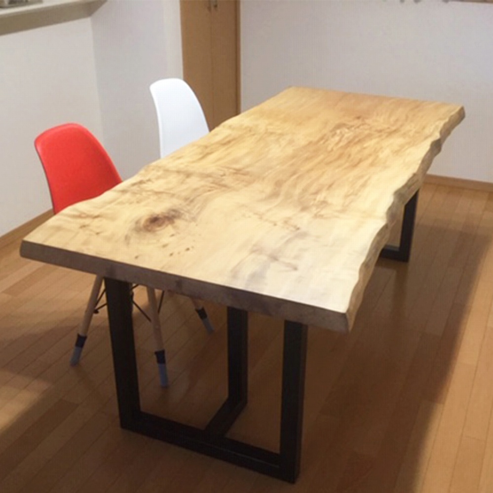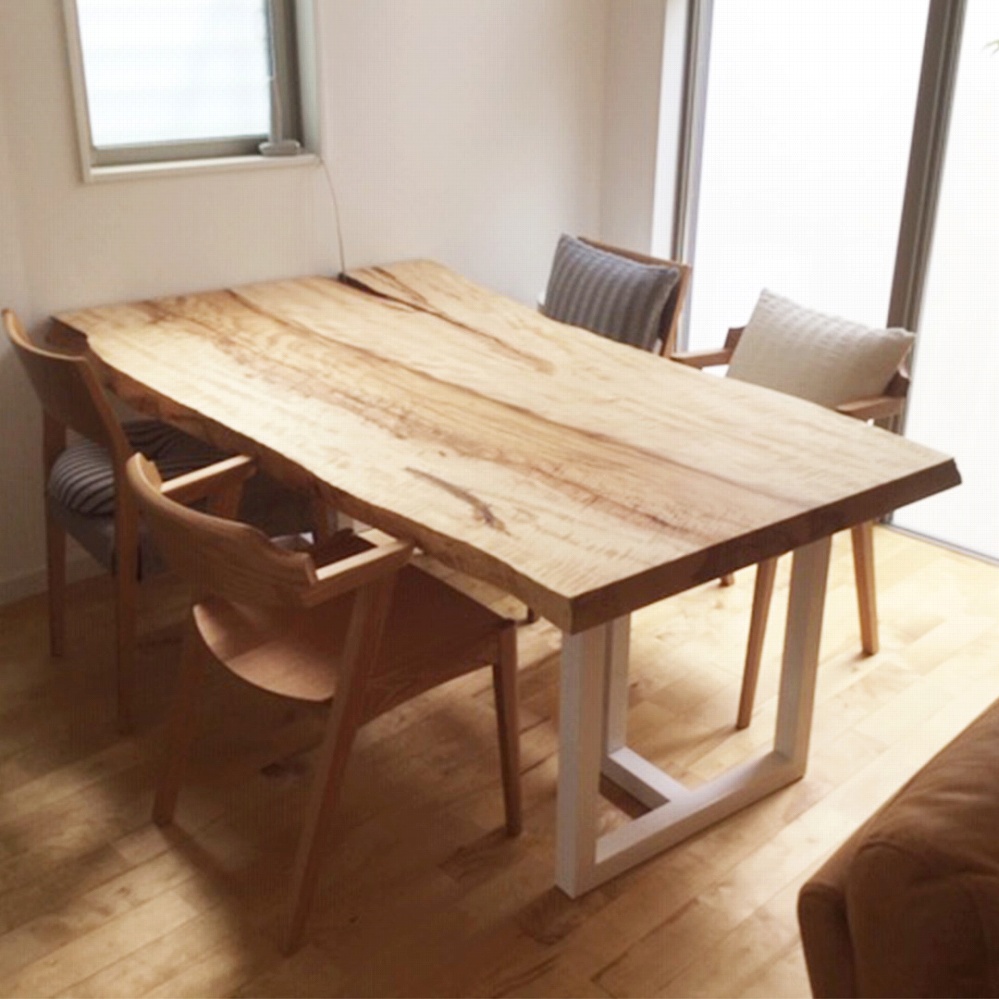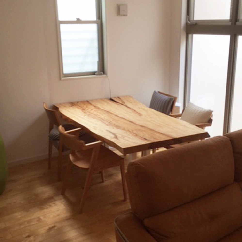 明るいダイニングによくあう栃(トチ)の一枚板をお届けさせていただきました。