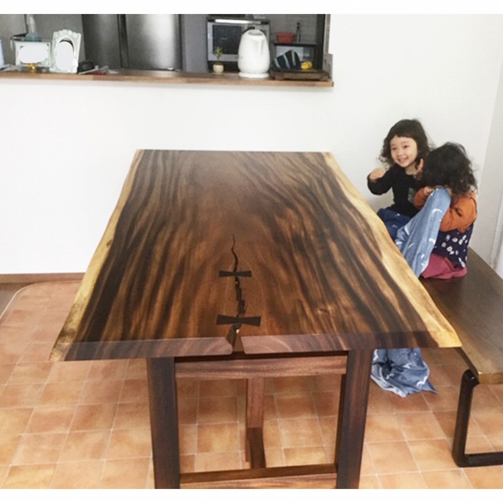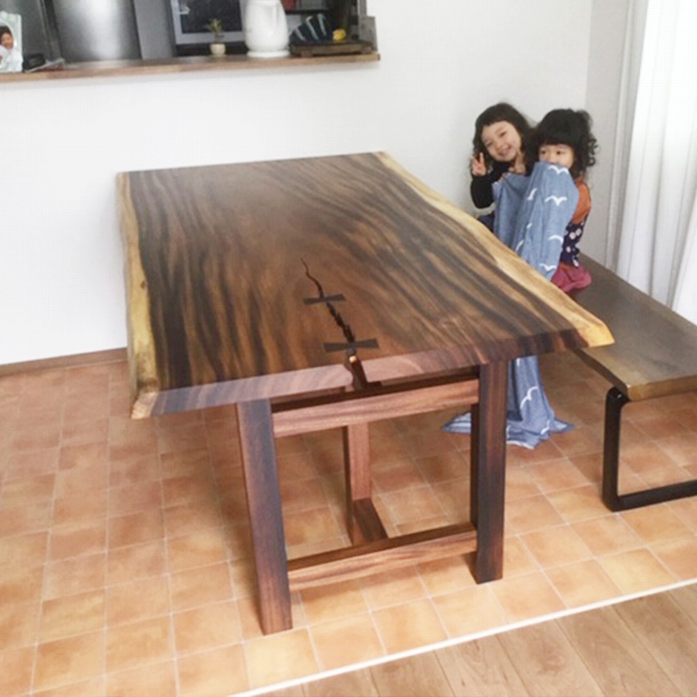 モンキーポッドで天板・脚・ベンチと揃っているのでとても統一感があり素敵なダイニングテーブルになりました。