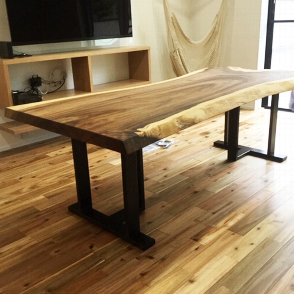 アイアンの角脚がよりいっそう一枚板を引き立てています。