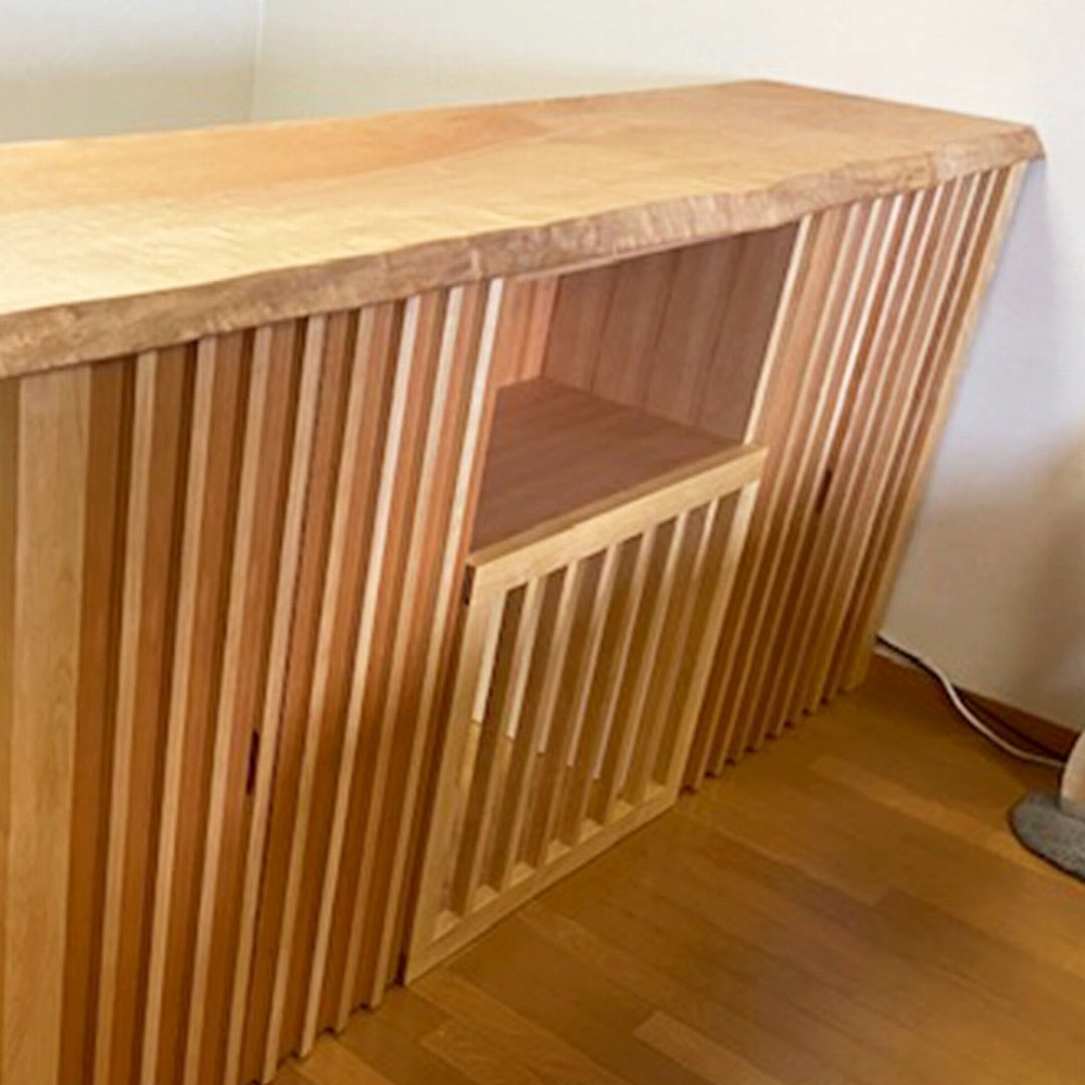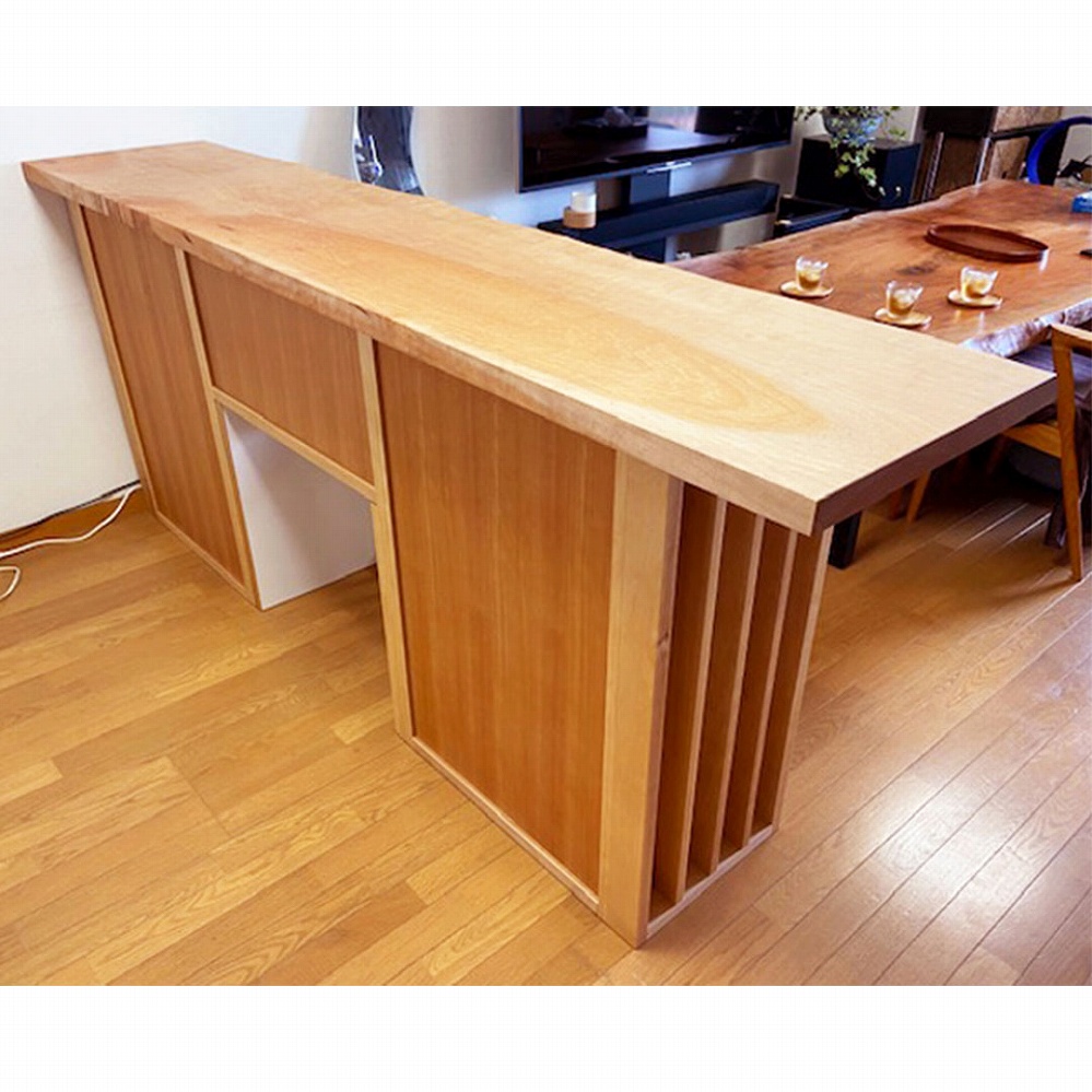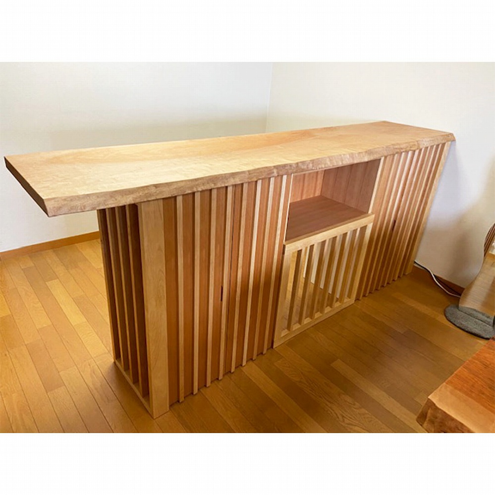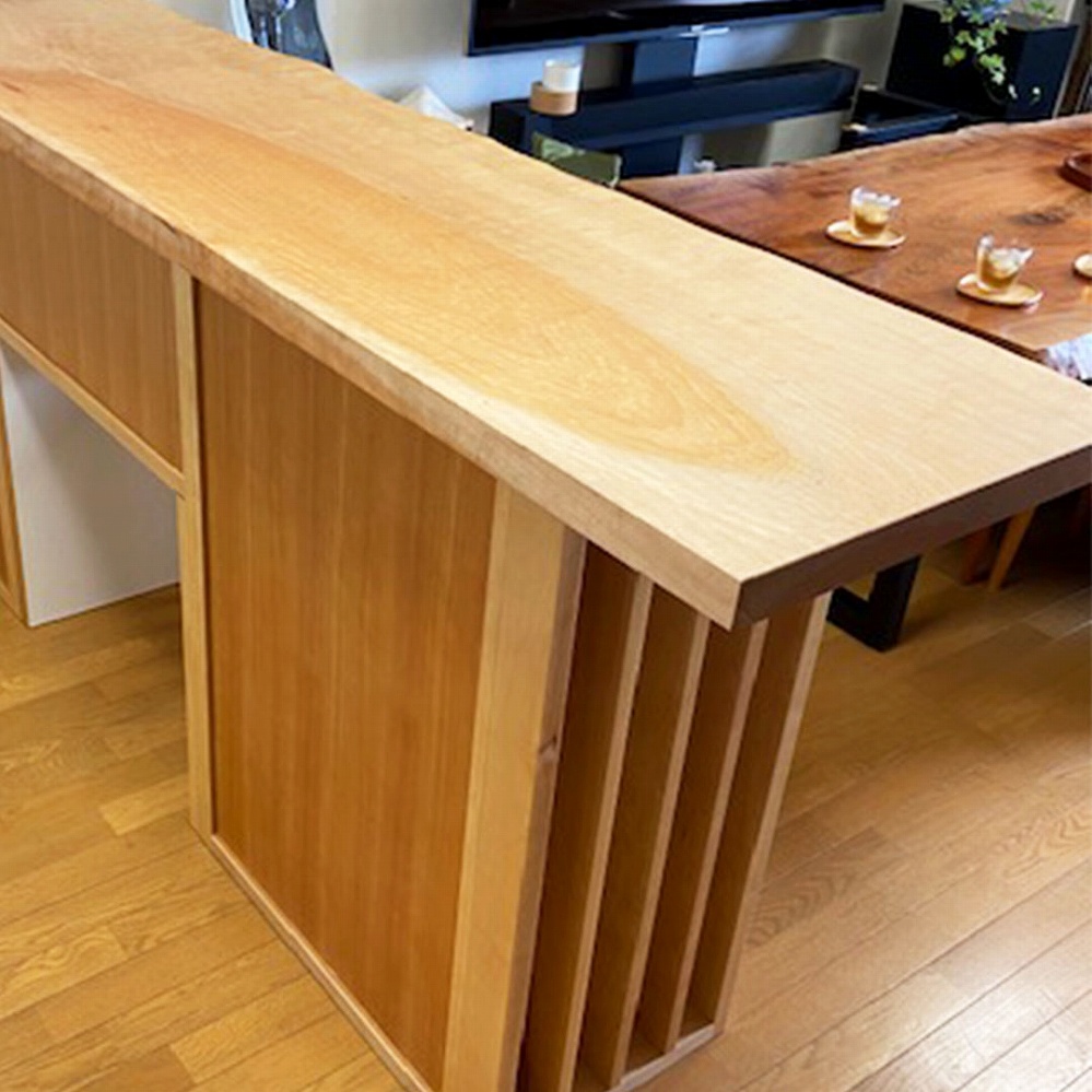天板は楓の一枚板、本体はカバ桜を使って作成した明るいカウンターです。