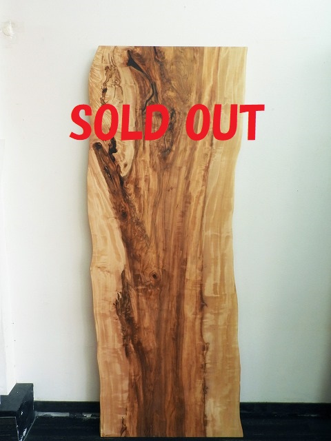 使いやすい長方形に近い形ですが、厚みは6cmありミミも少し波打っているので、座って手で触れるのも楽しいです。特に凹凸が大きいところでは、綺麗な杢が出ているので、これはもう場所取り合戦ですね。
