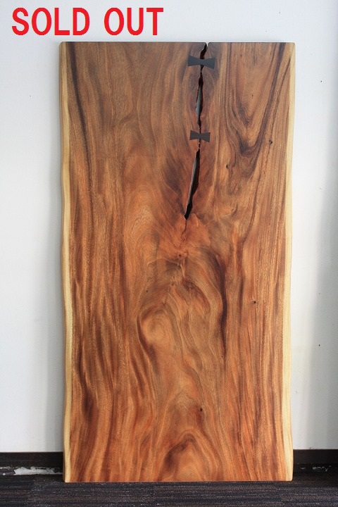 割れの部分には広がりを避けるため契りを埋め込んでいますが、あえて隙間を残してワイルドさを際立てた一枚です。