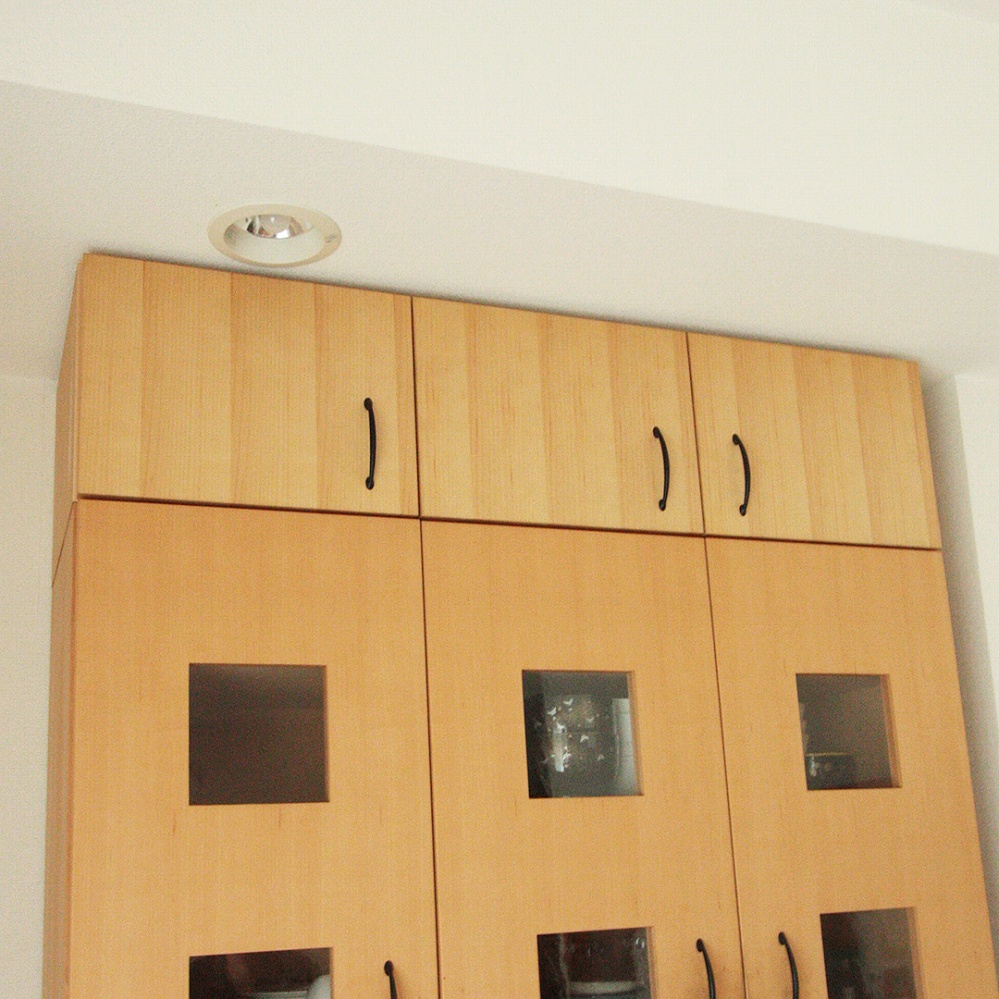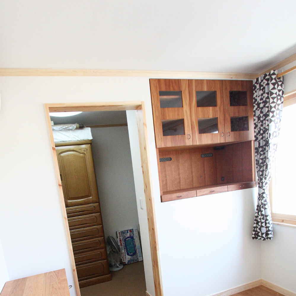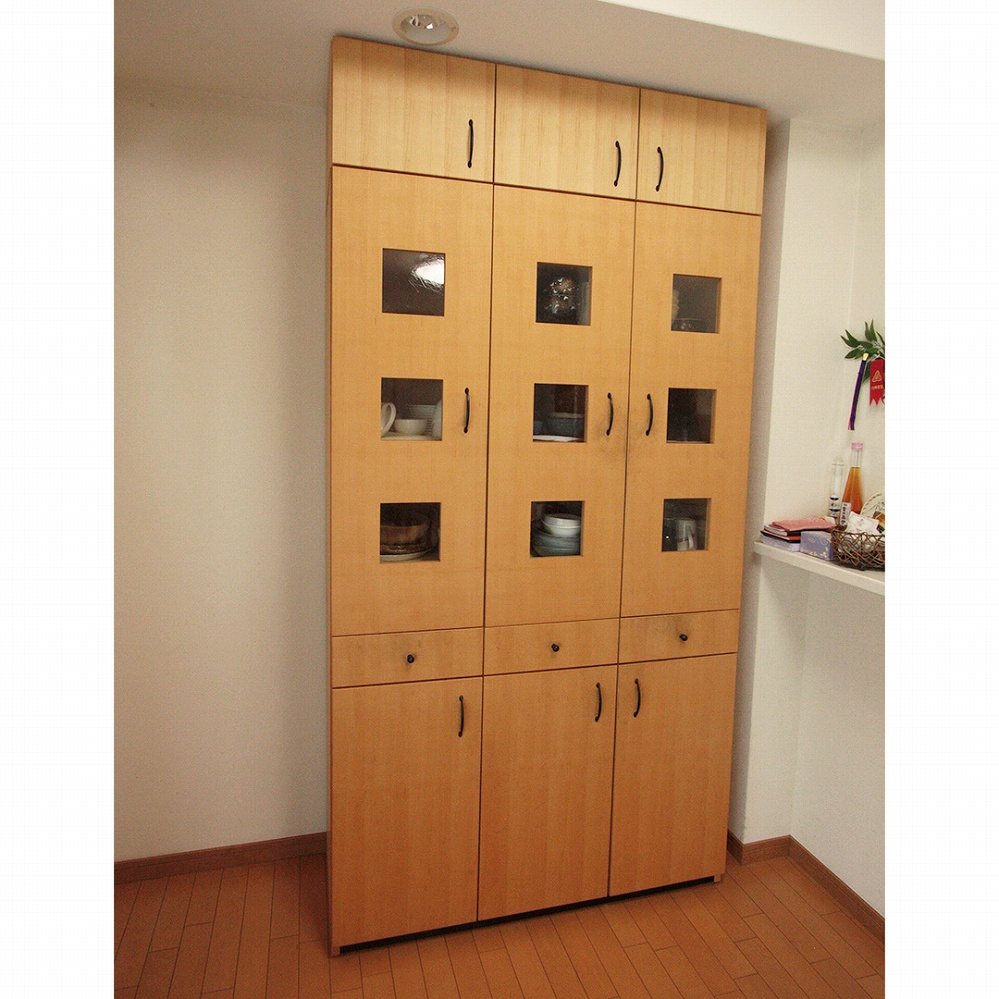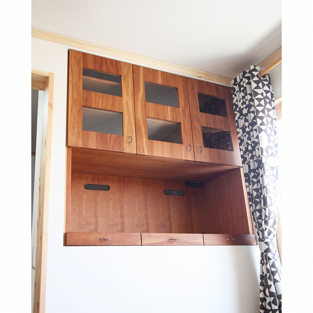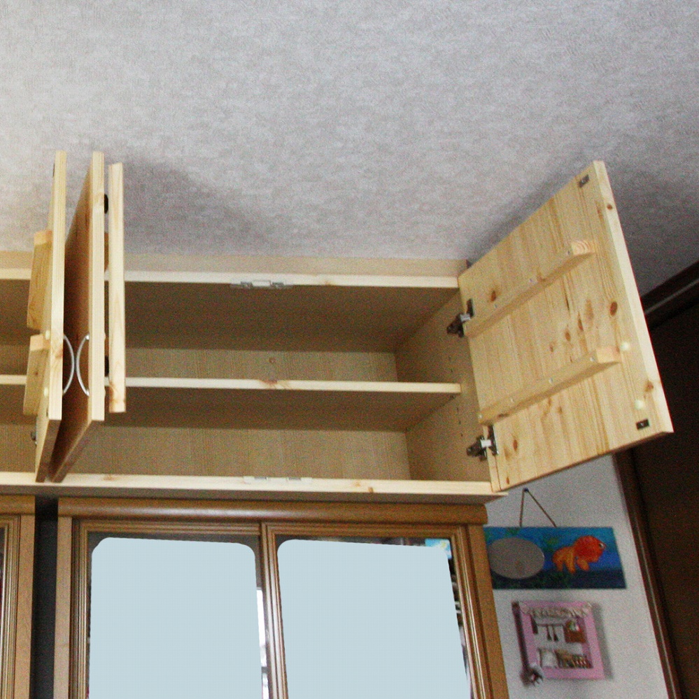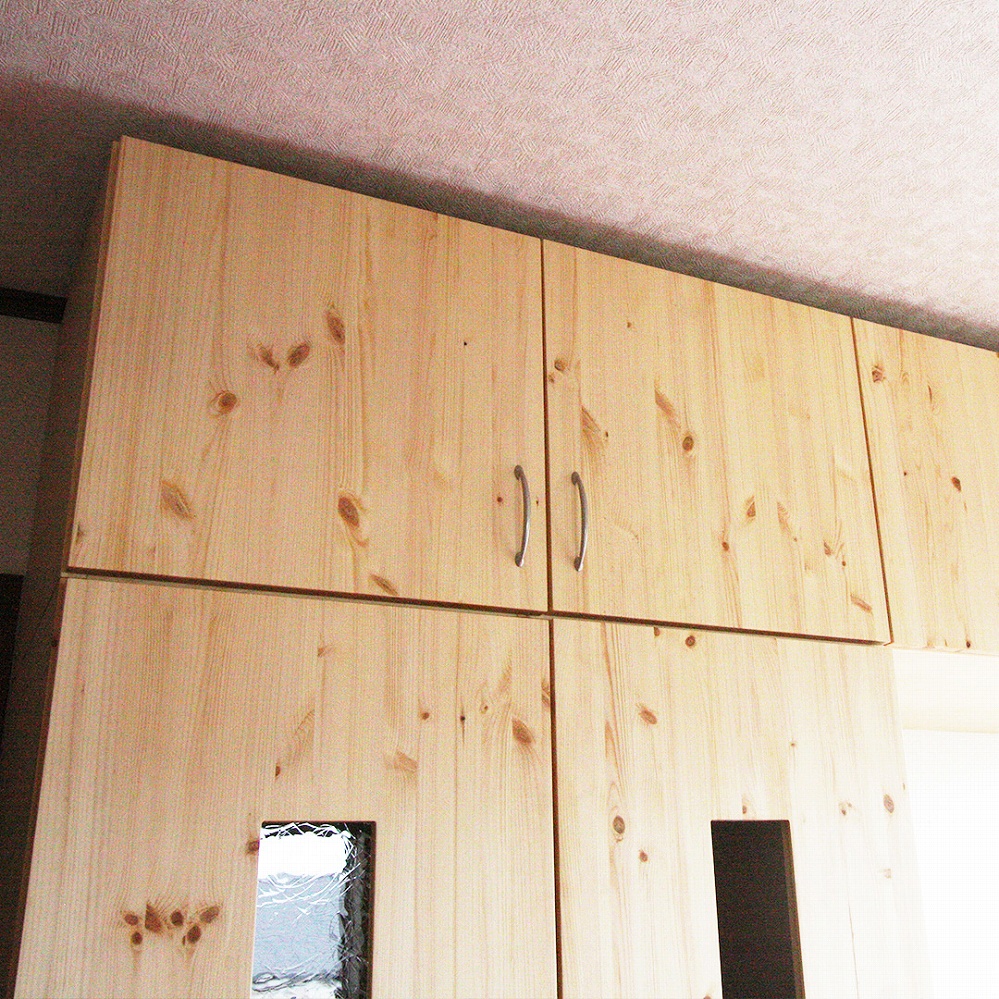 もともとお使いいただいていたカップボードの上、天井までの空間をピッタリ埋める戸袋をお届けさせていただきました。