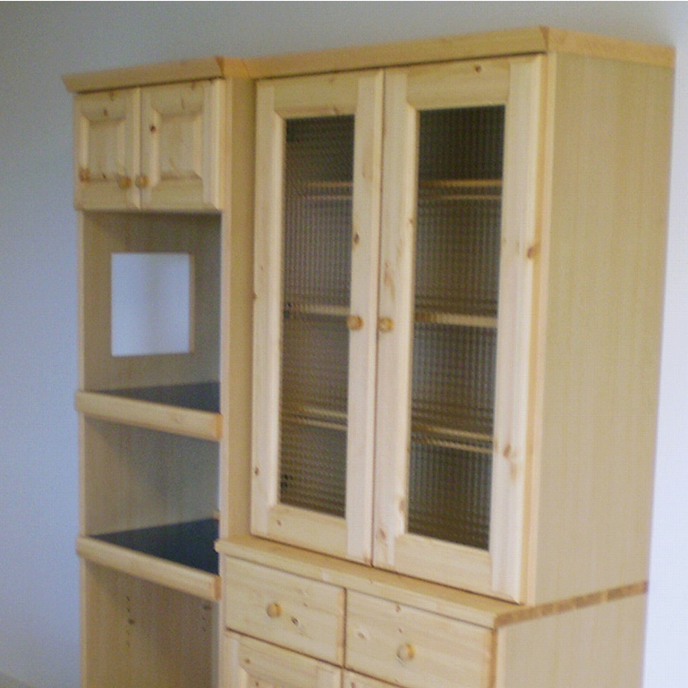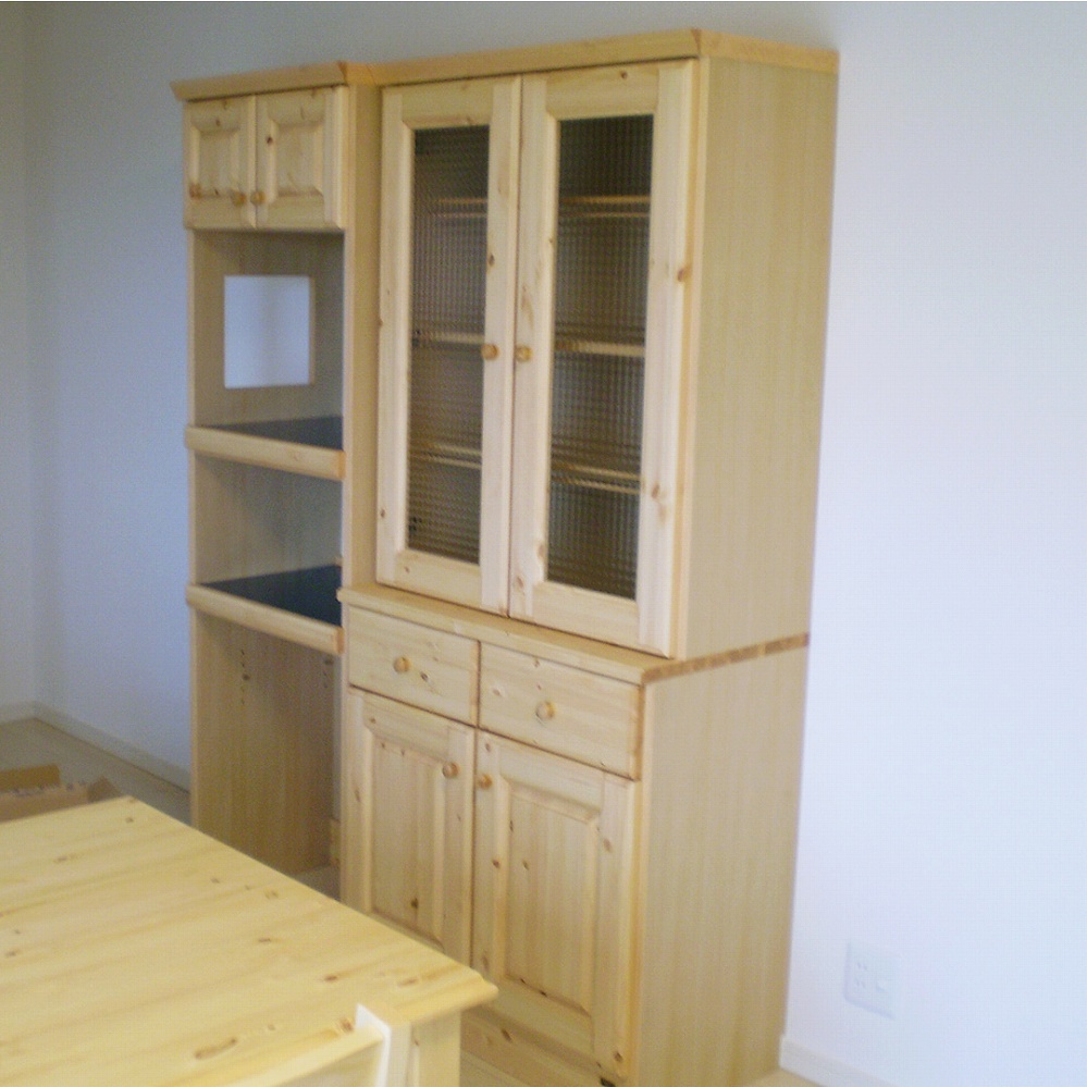 ダイニングセットと合わせて天然木のパイン材でお作りさせていただいた、カップボードとレンジボードです。