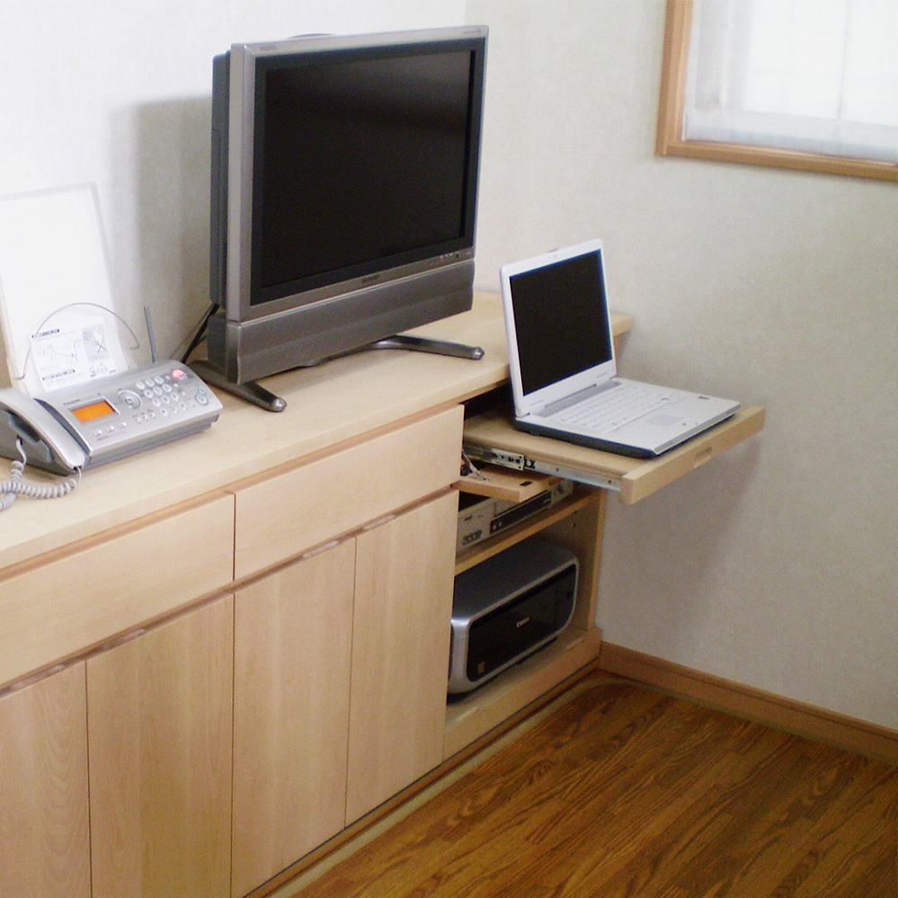 ご自宅の機器類をまとめて置けるサイドボードをオーダーにてお作りさせていただきました。