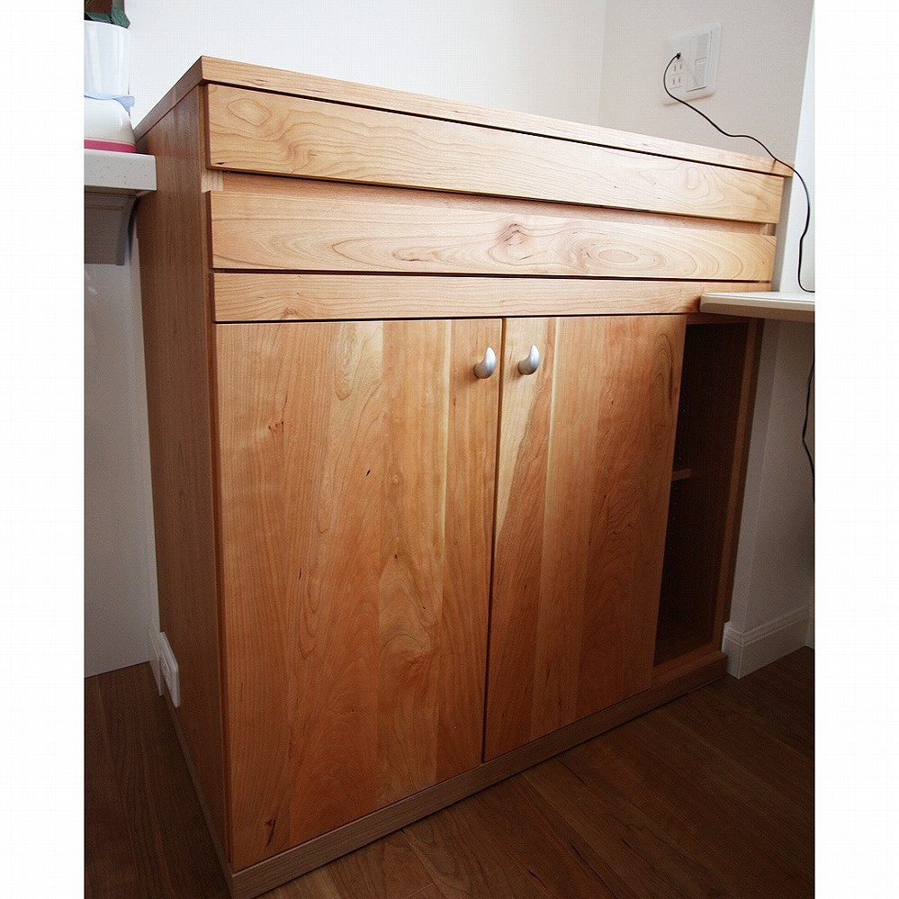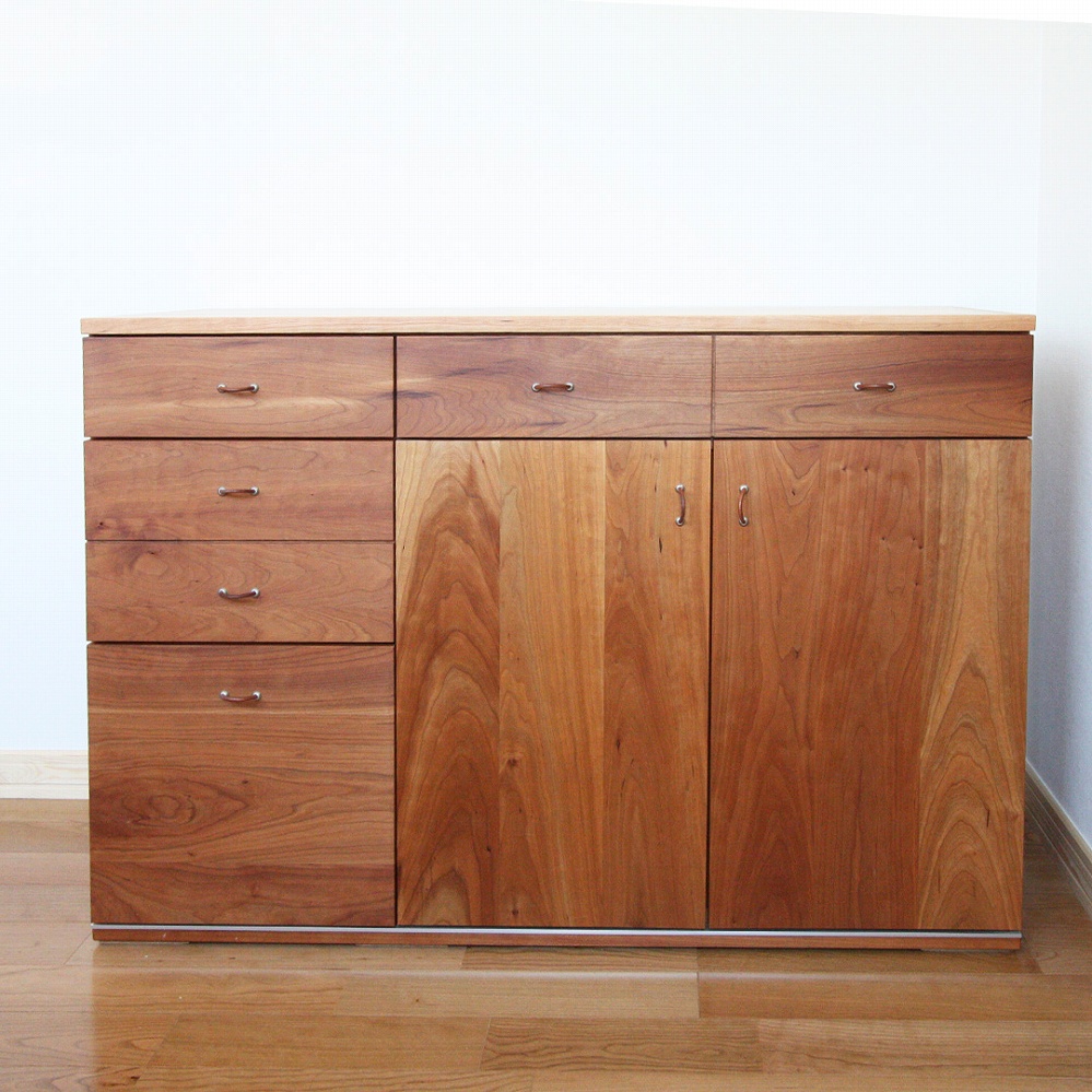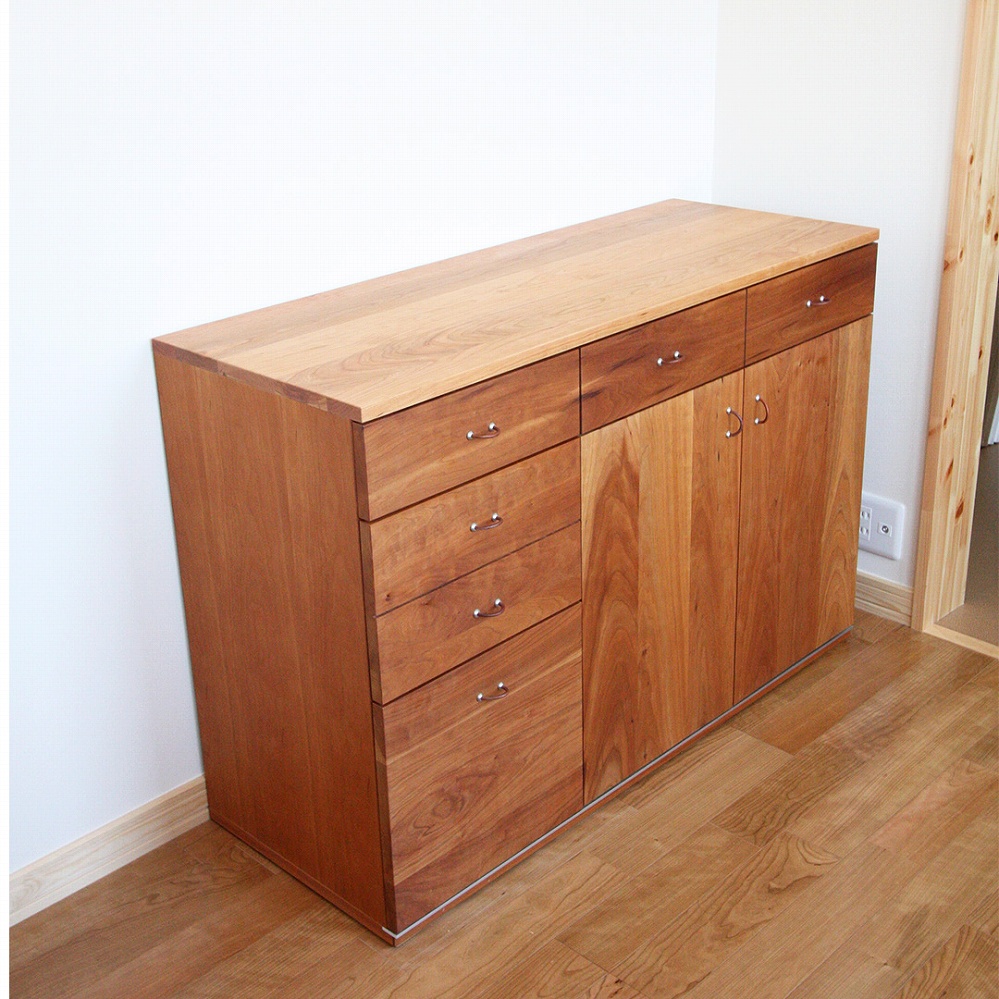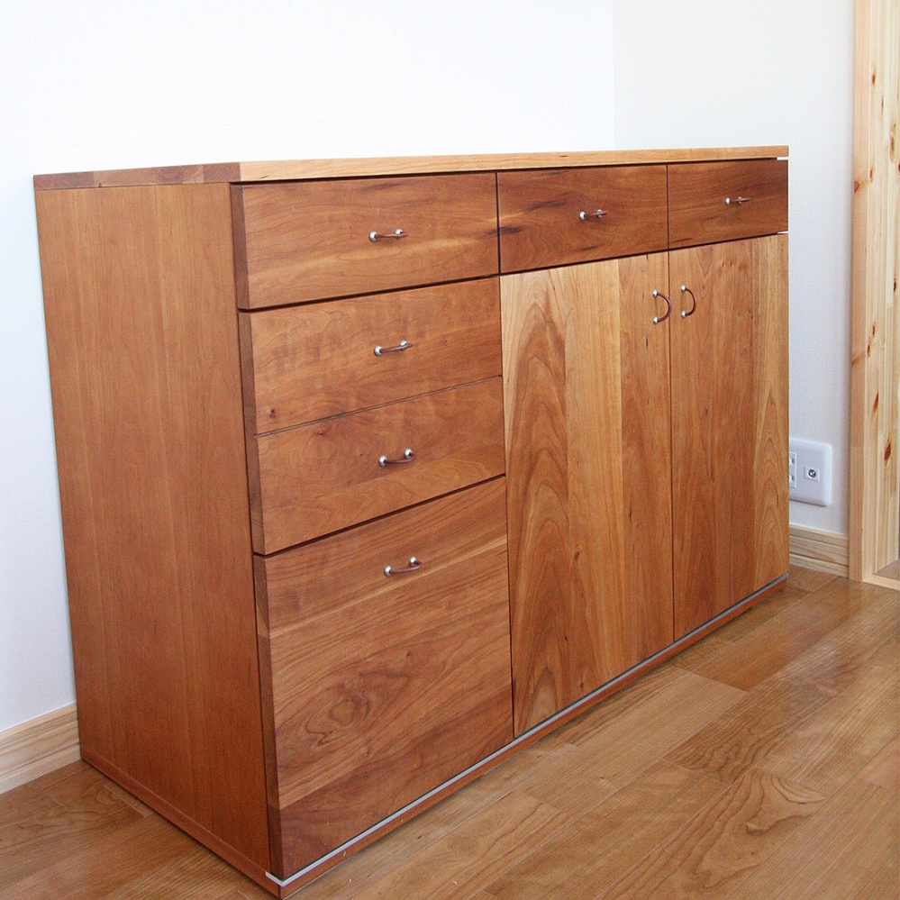 ご新居のスペースへお届けさせていただいた天然木のブラックチェリー材のサイドボードです。