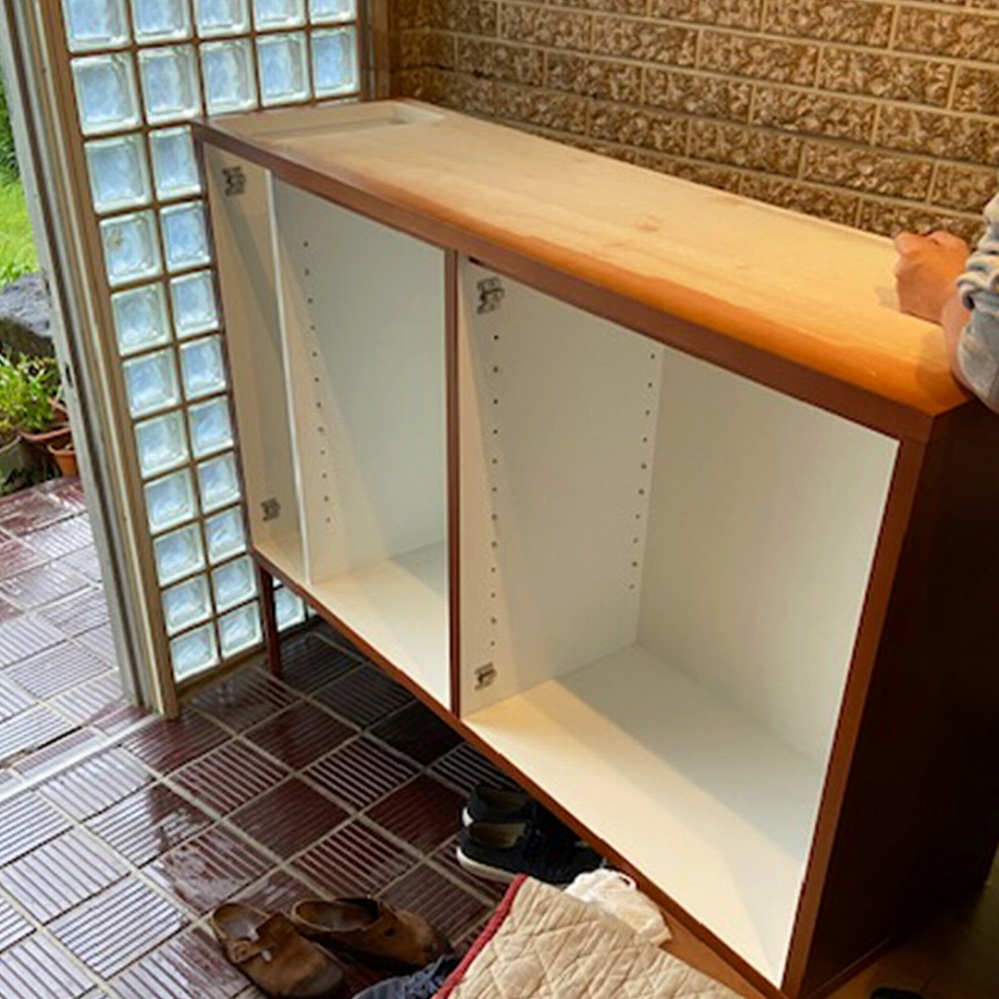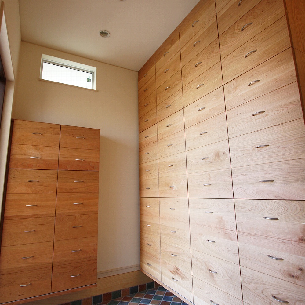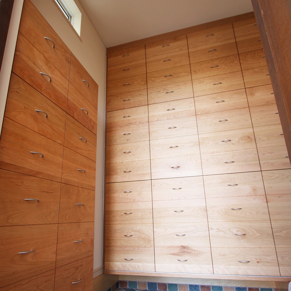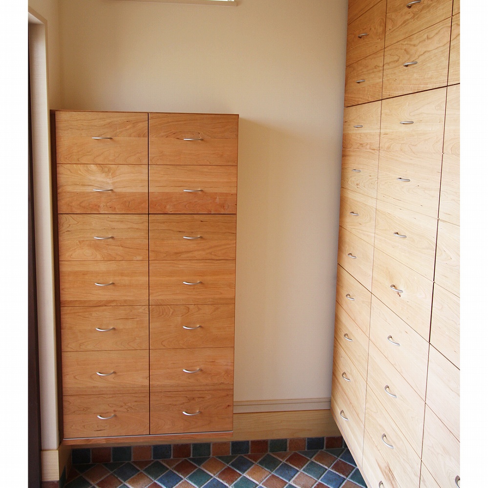 以前も同じチェリー材でお作りさせて頂いた下駄箱を使われていたのですが、