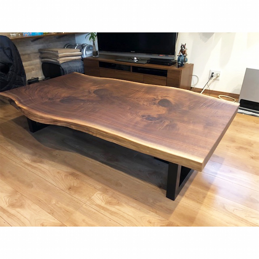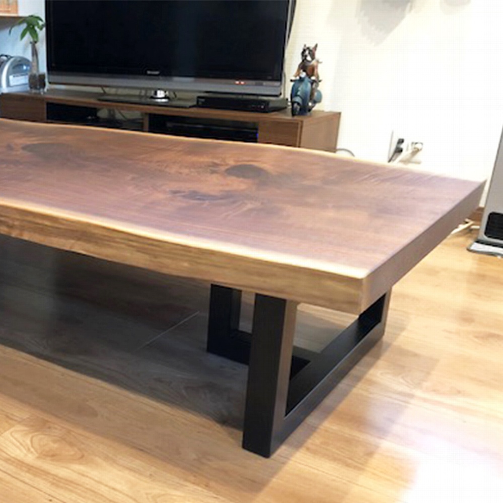 TV前のローテーブルとして黒のアイアン角脚と一緒にお届けさせていただきました。