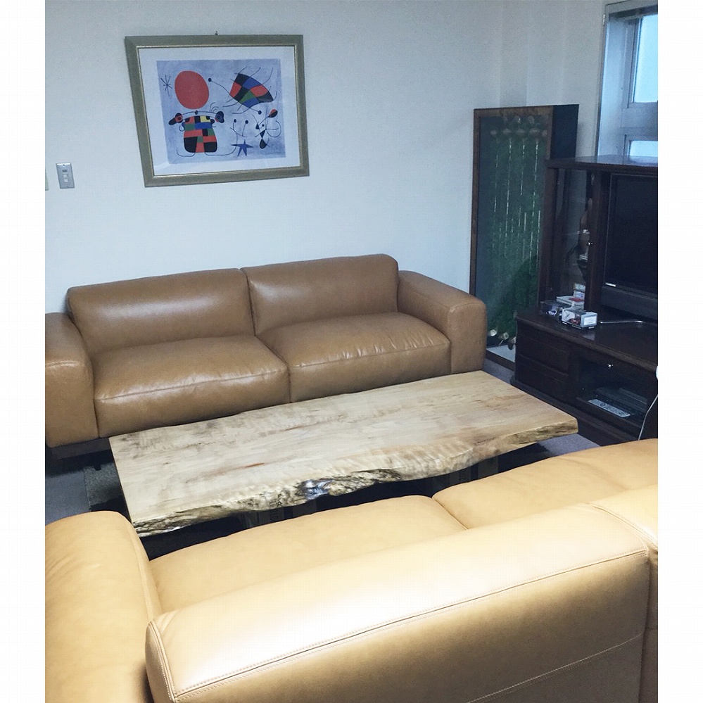 ソファ前にメープル材の座卓テーブルをお届けさせていただきました。