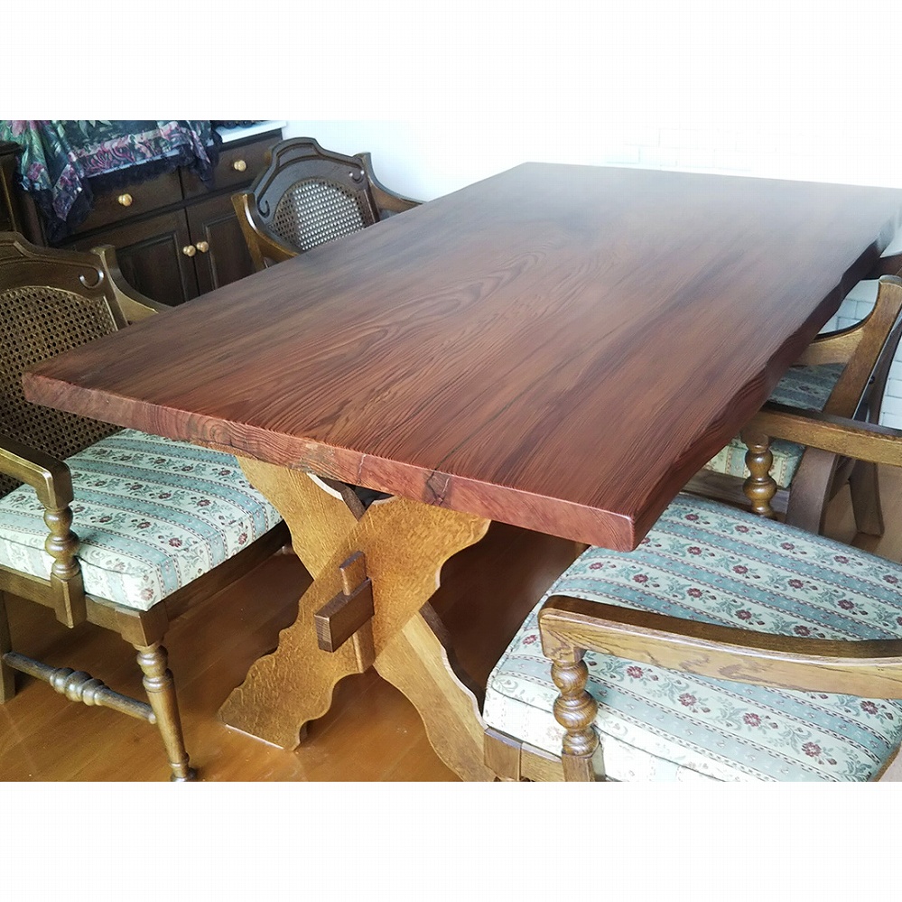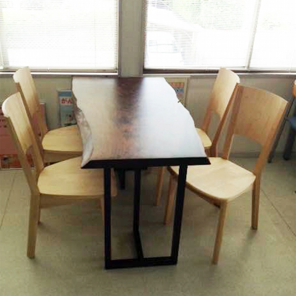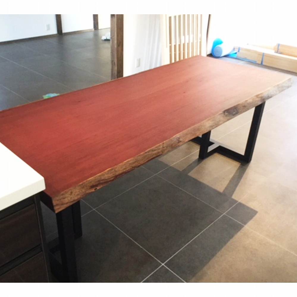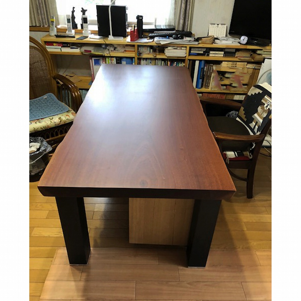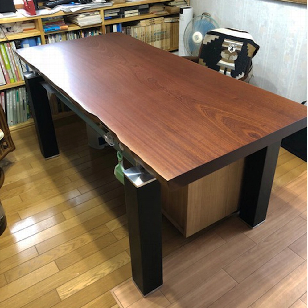 お使いになられていた脚を再利用し、その上に一枚板を載せております。