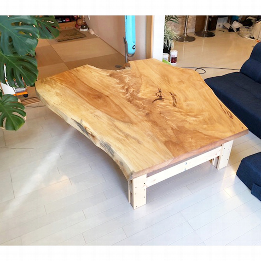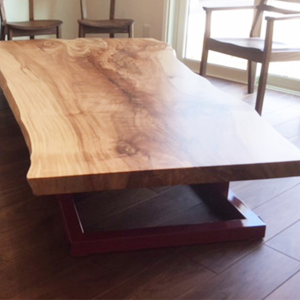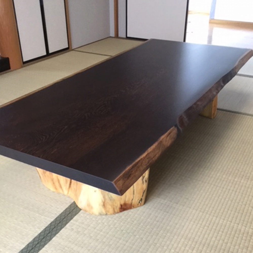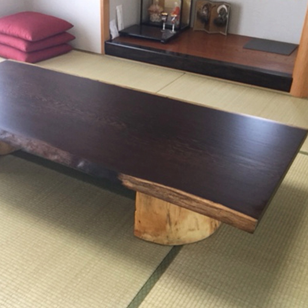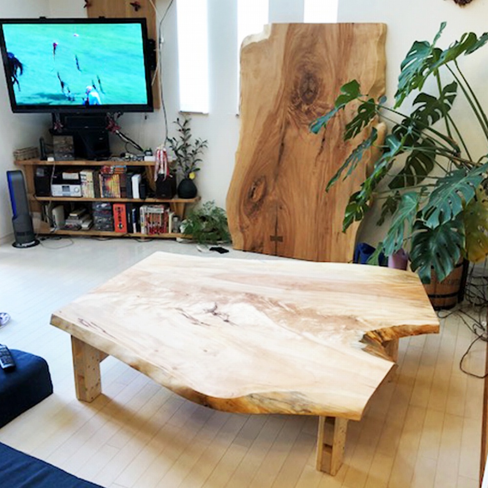 座卓としてもご利用できる、栃(トチ)の一枚板をお届けさせていただきました。