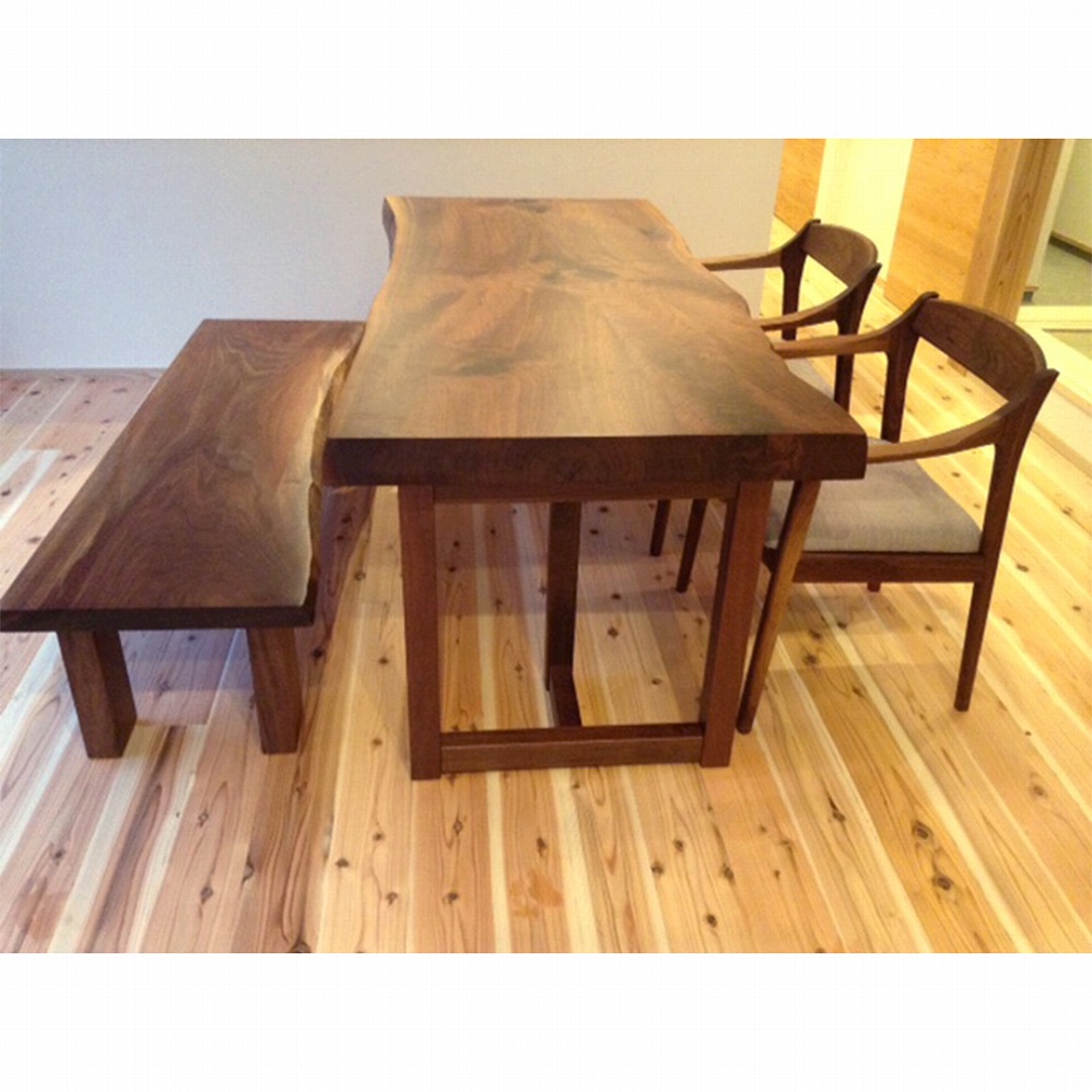 同じくウォールナット材の一枚板ベンチもご一緒にお届けです。