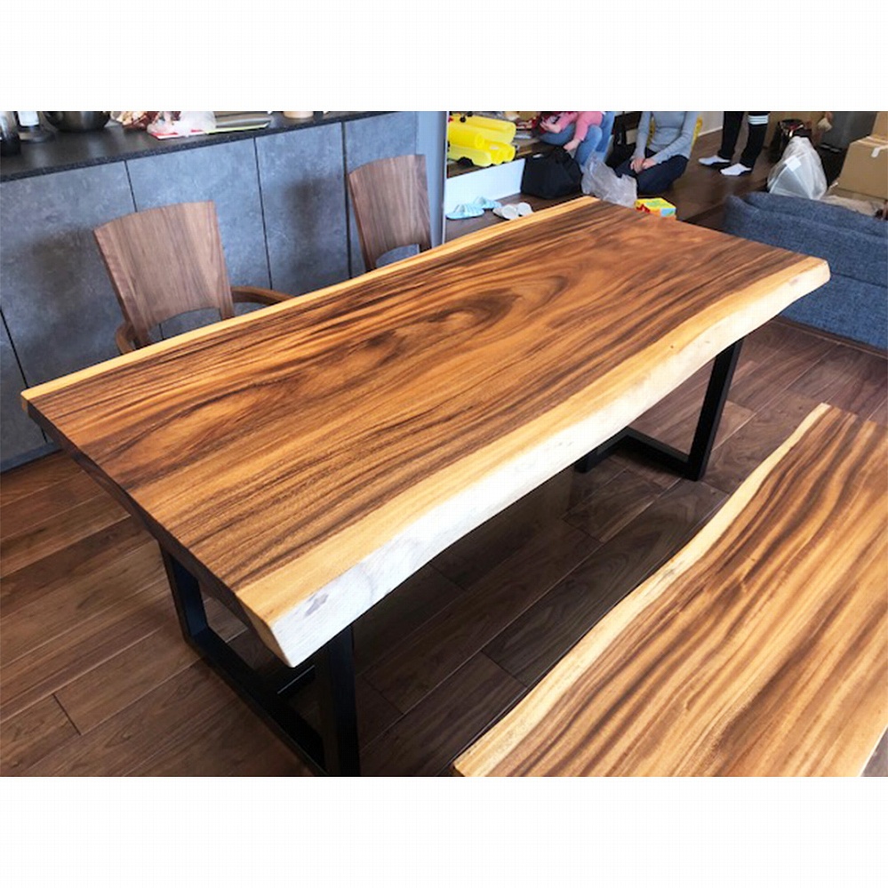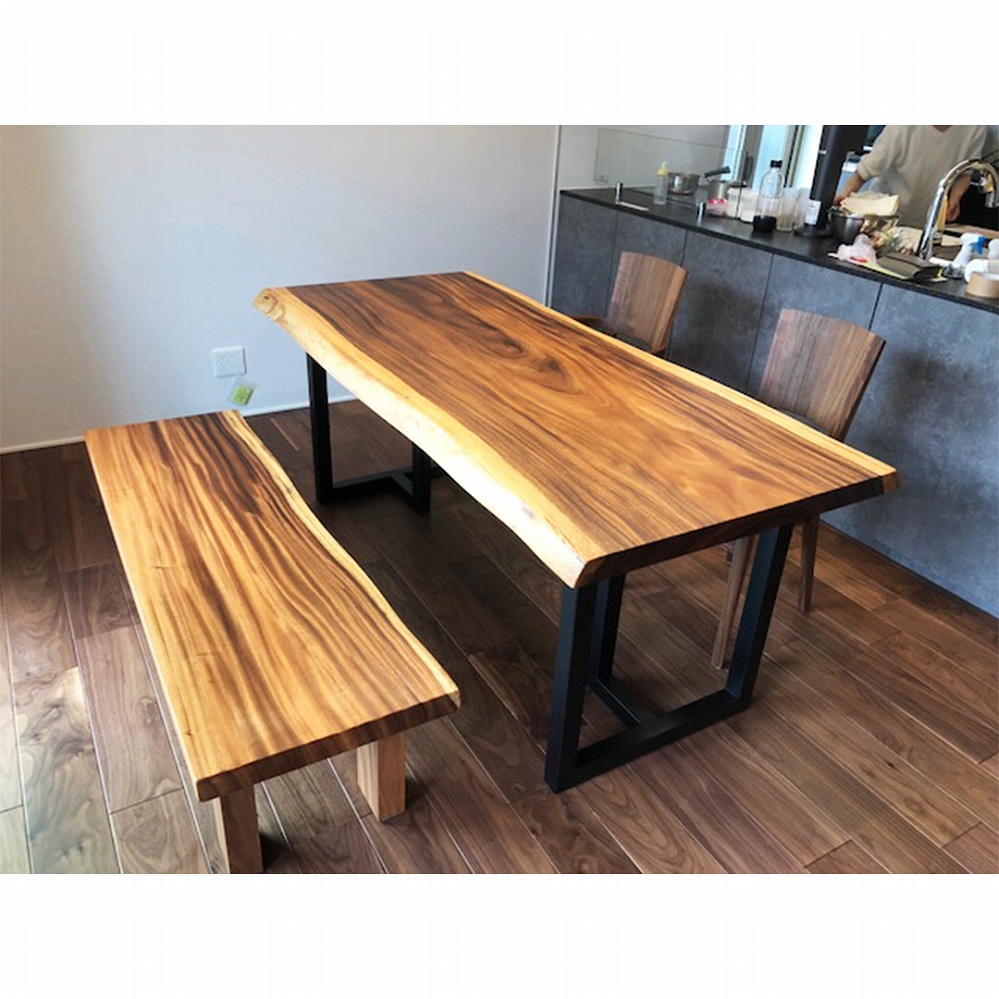 お揃いでモンキーポッド材の一枚板ベンチも一緒にお届けさせていただきました。