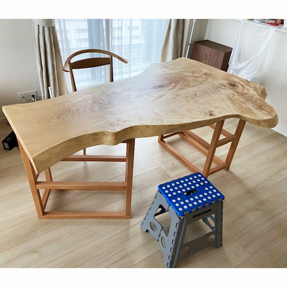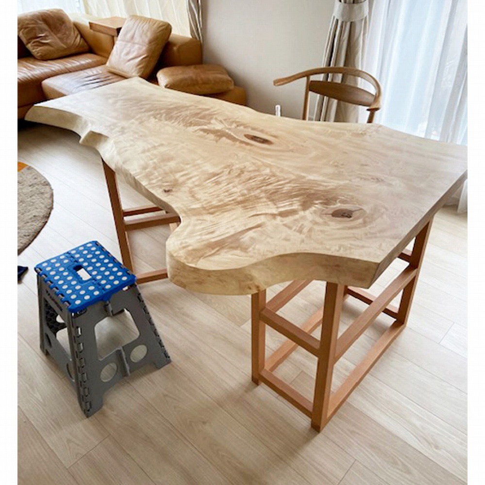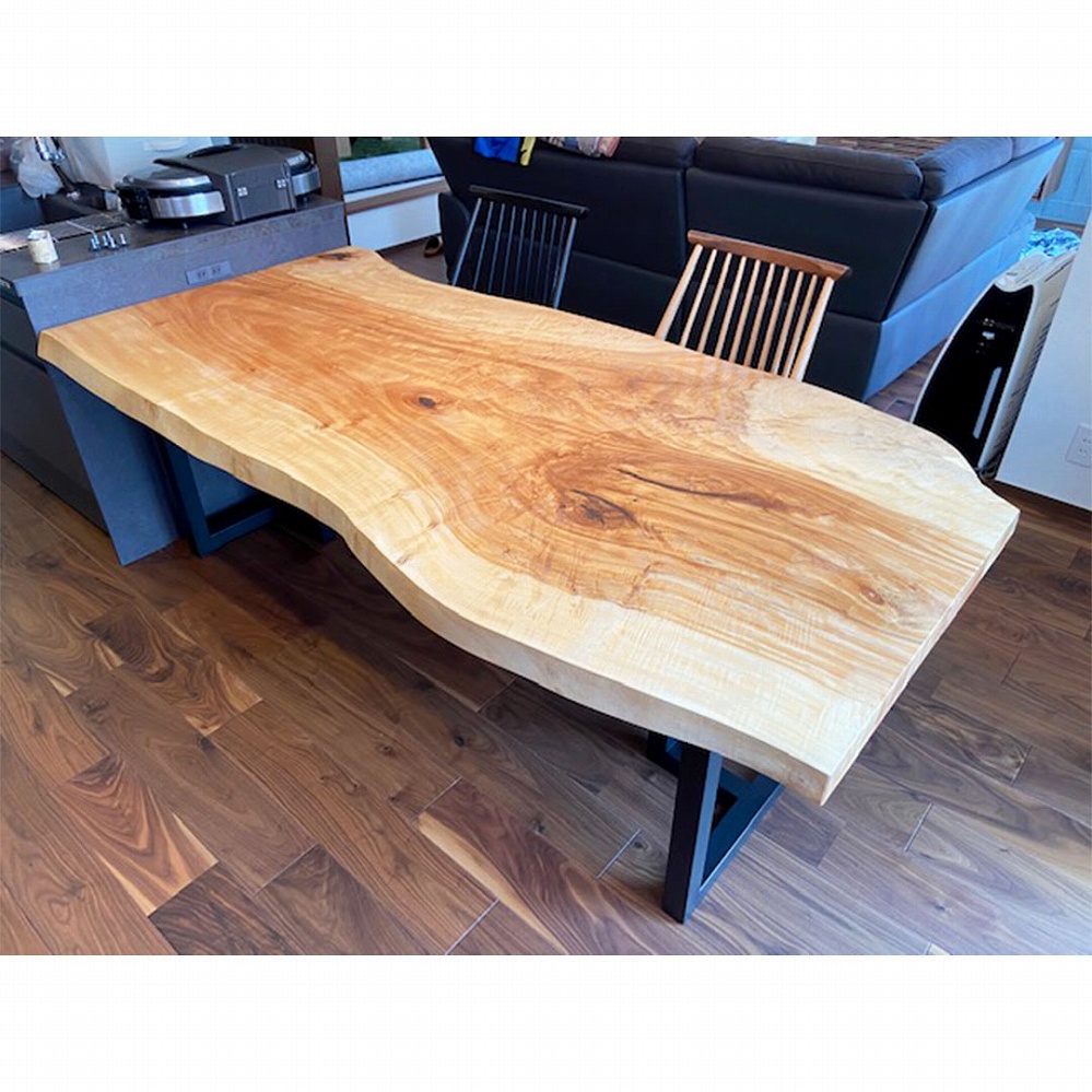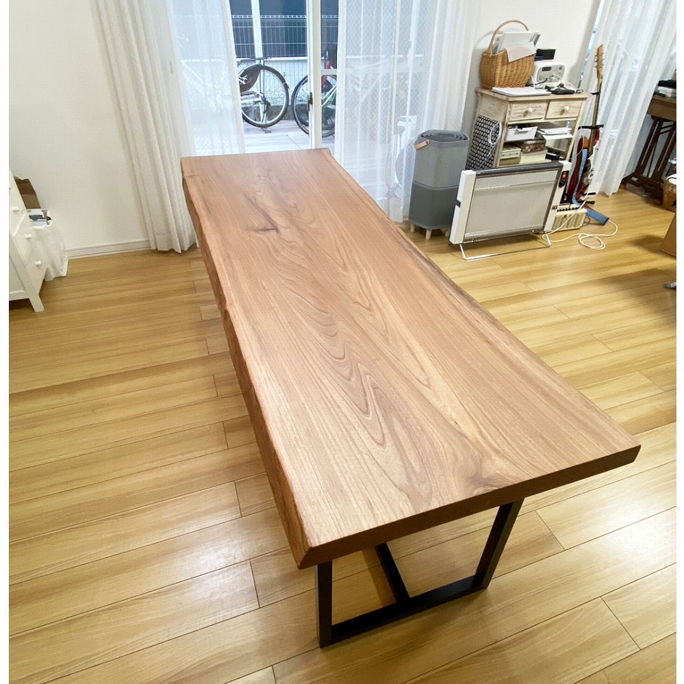 あまりお目にかかれない珍しい楡(ニレ)材の一枚板をお届けさせていただきました。