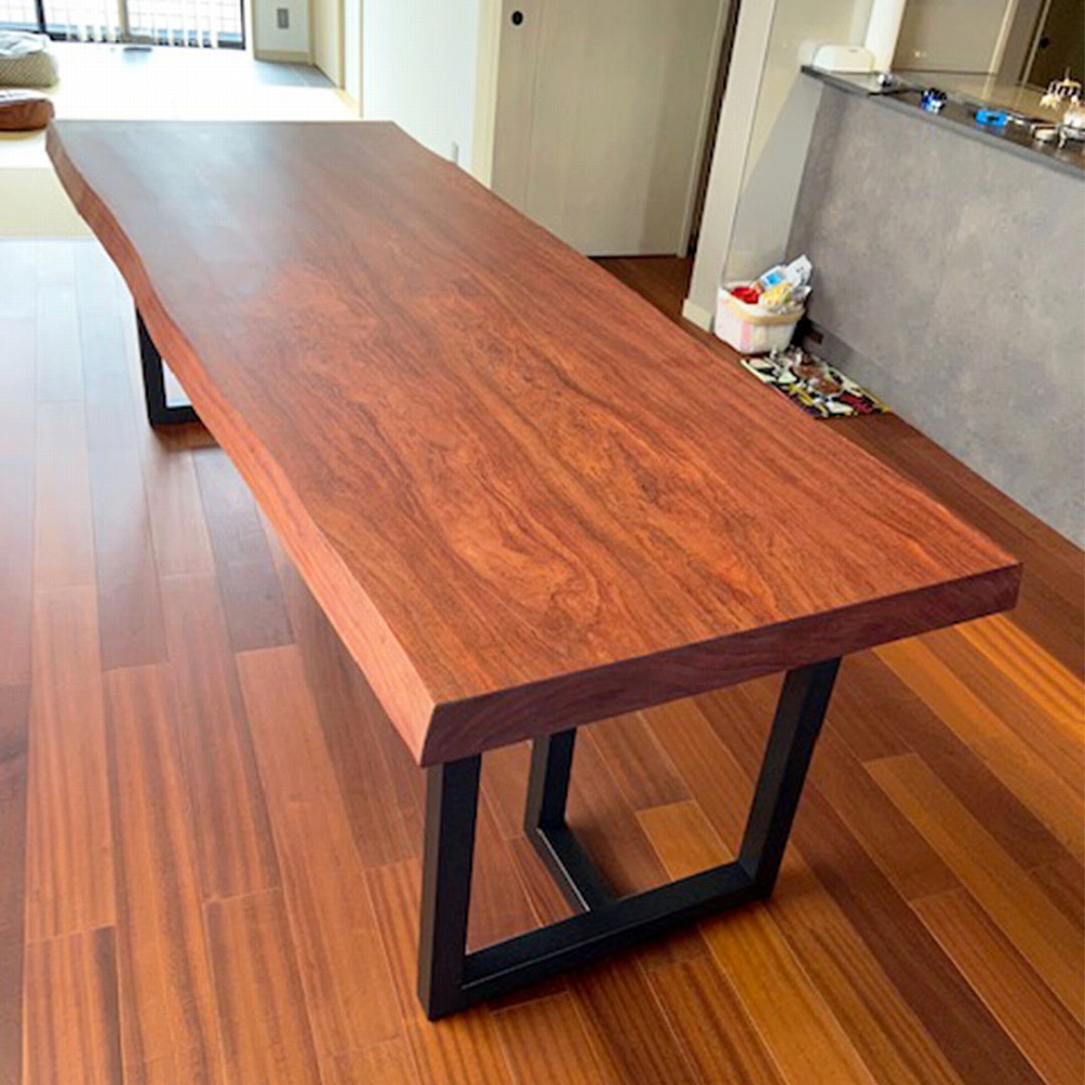 お部屋のフローリングにもマッチする色合いが素敵なブビンガの一枚板をお届けさせていただきました。