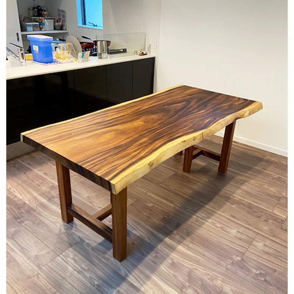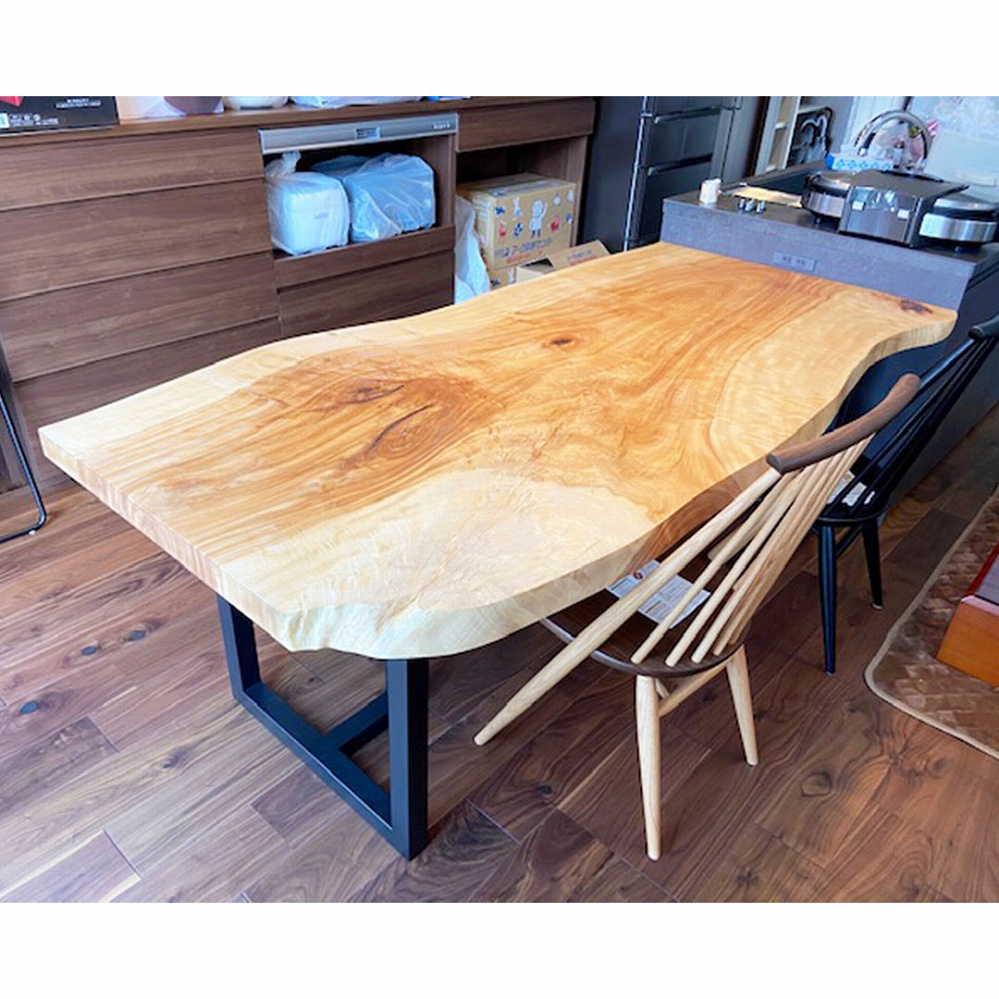 ひと際華やかな空間を作る栃(トチ)のテーブルです。