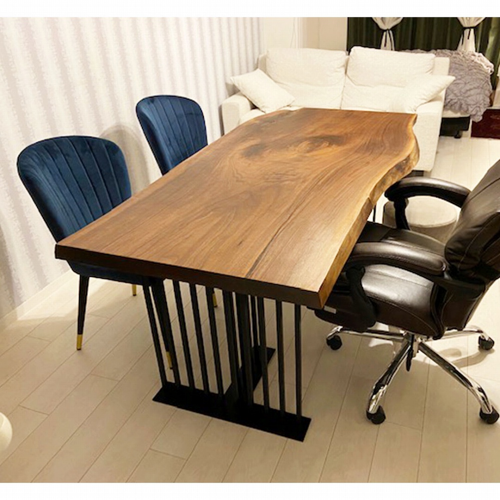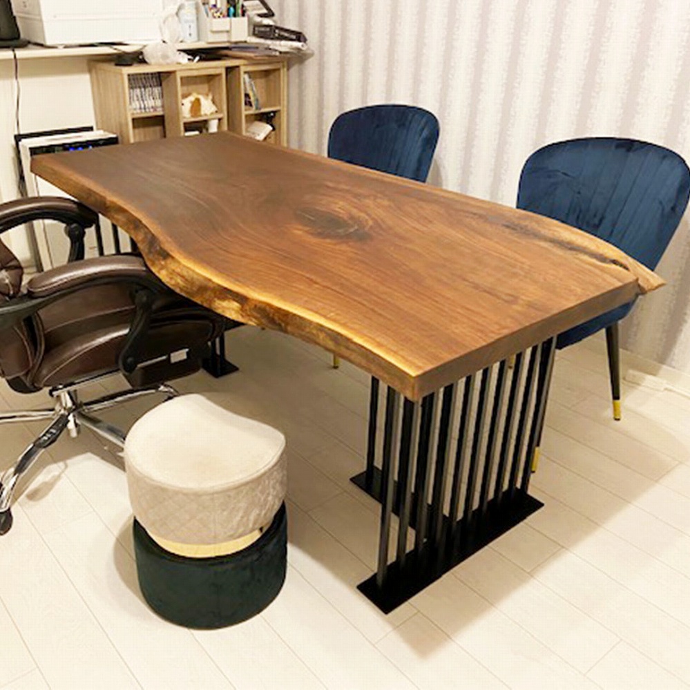 デザイン性のあるアイアンの脚を合わせたことで、ウォールナットの一枚板がよりかっこよく引き立っています。