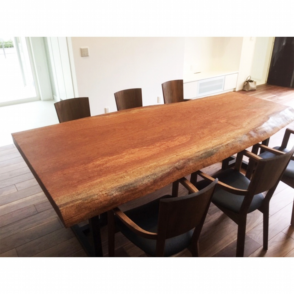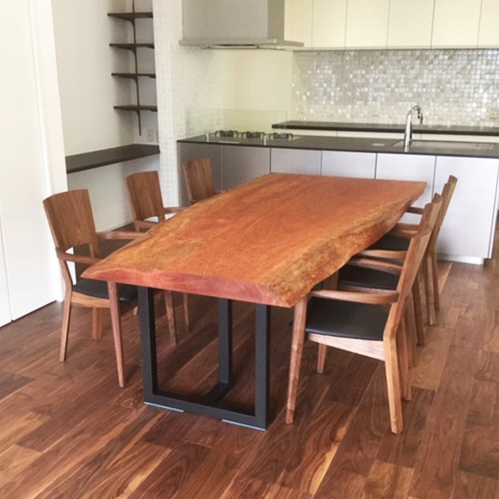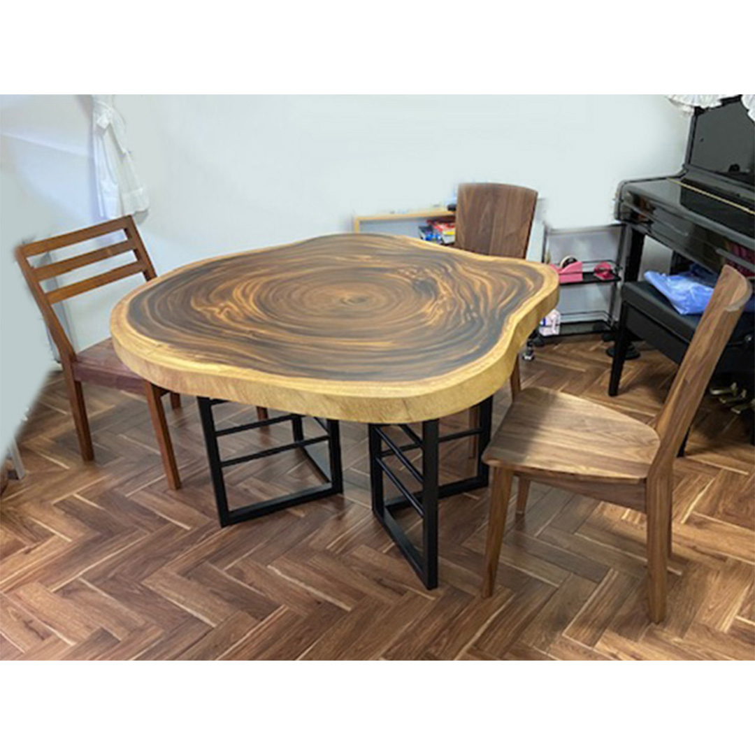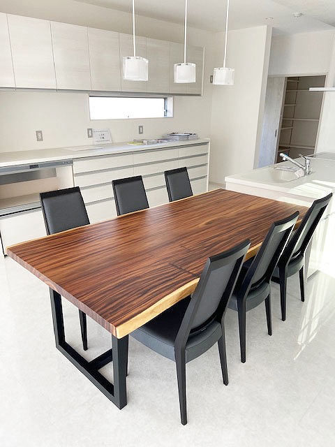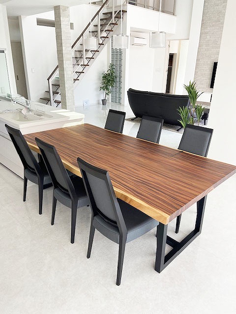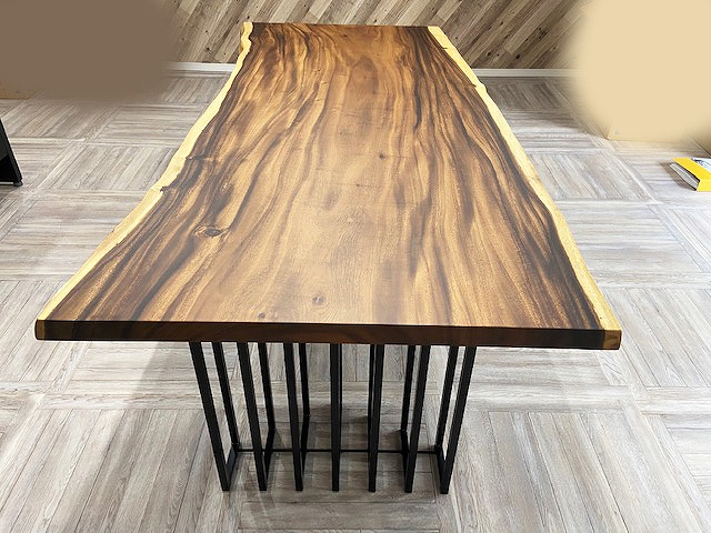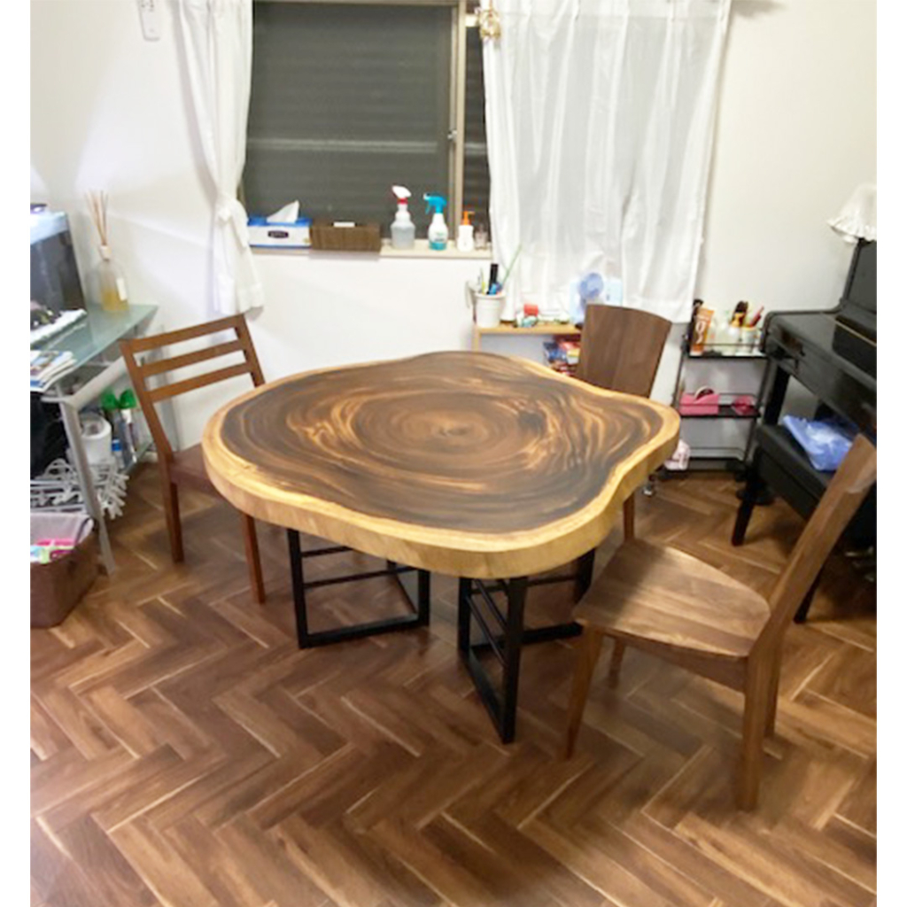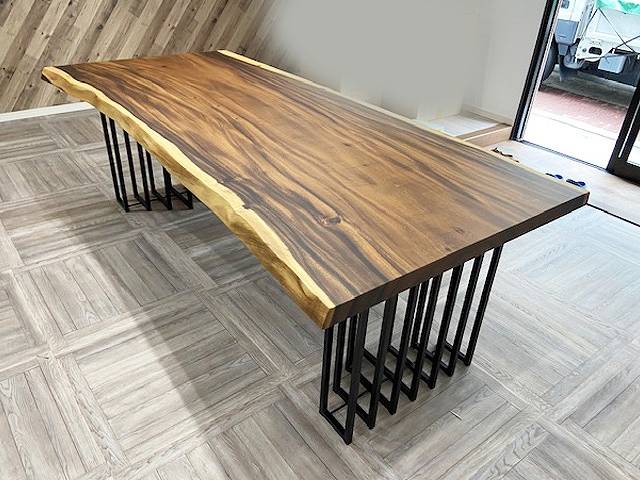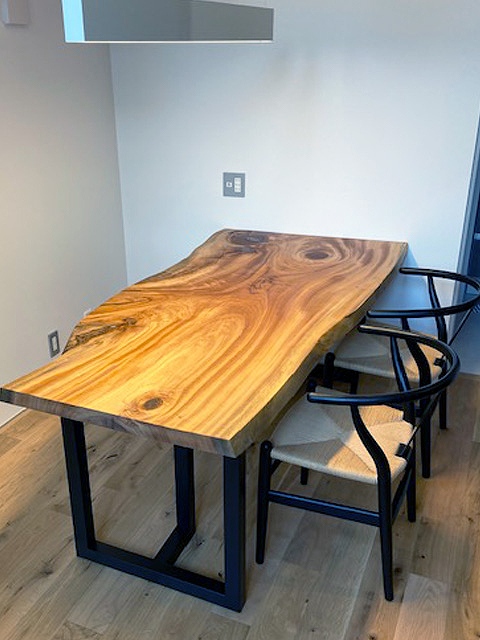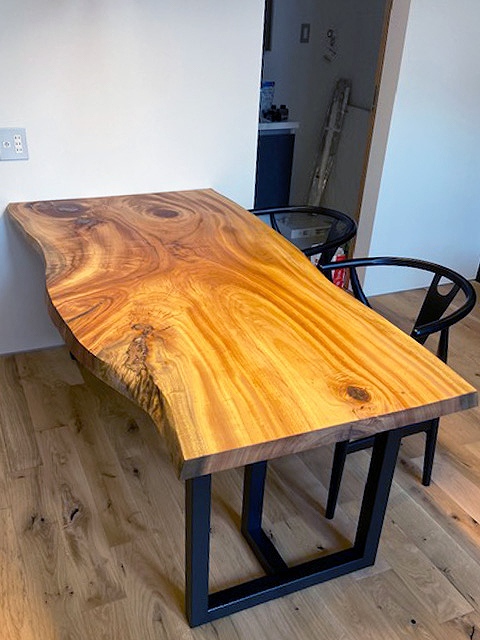 柔らかな木目のモンキーポッドと欅の脚をお届けさせていただきました。