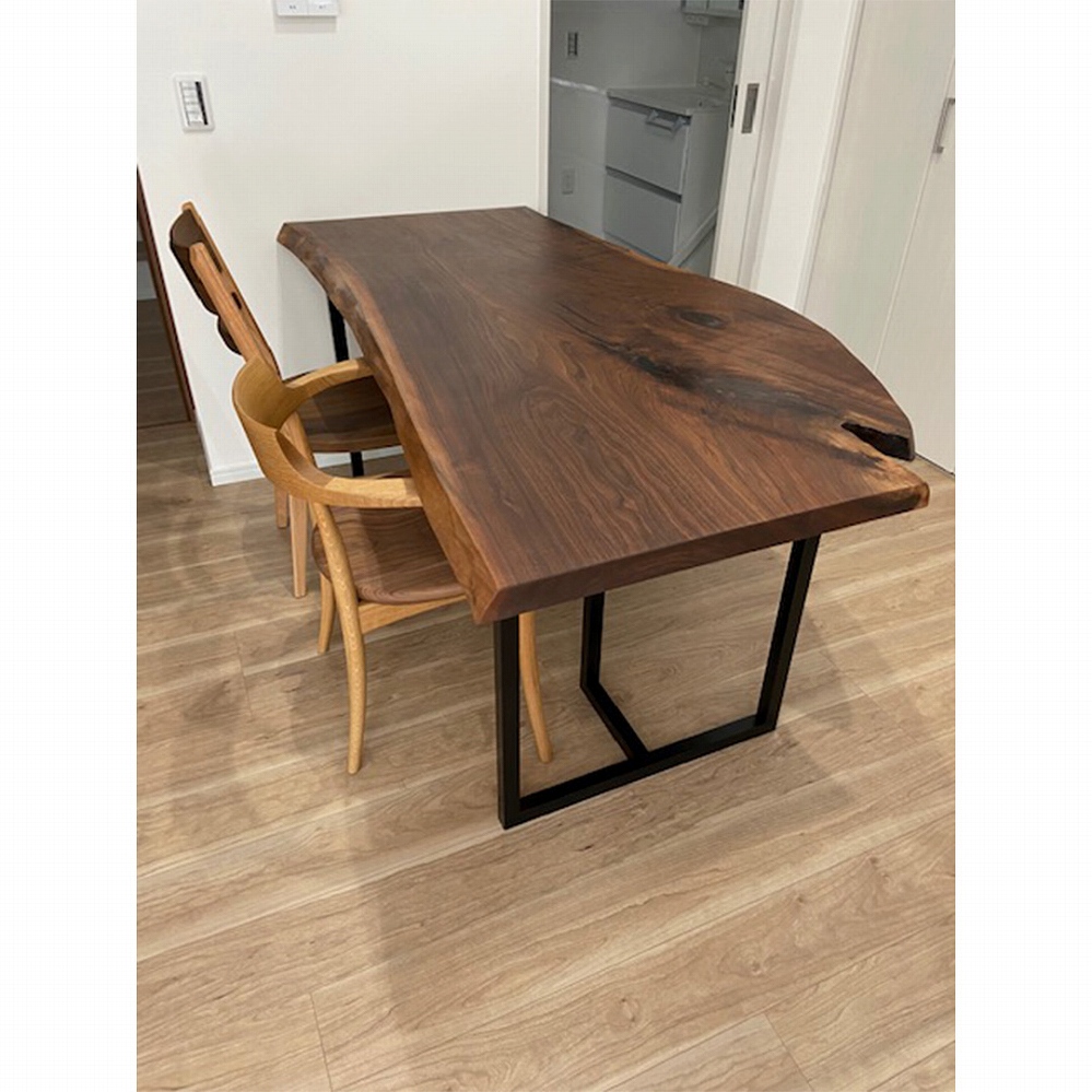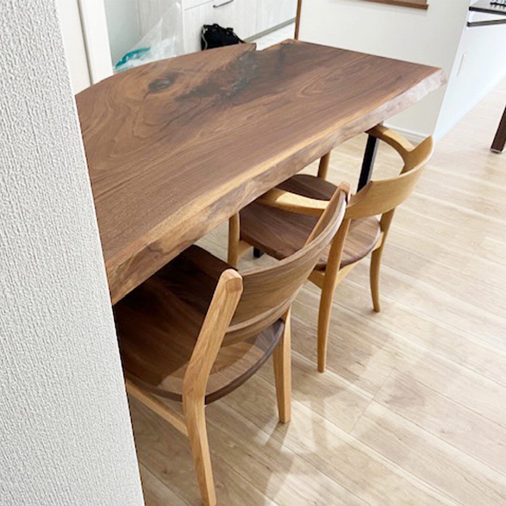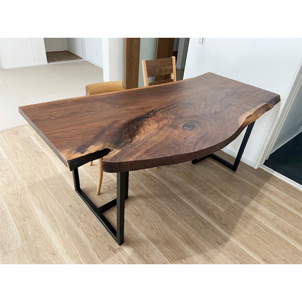 変型で自然味溢れるブラックウォールナット材の一枚板をお届けしました。