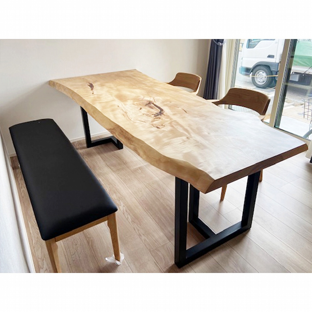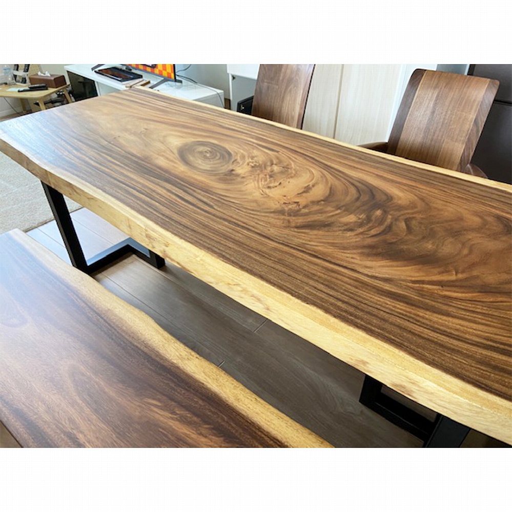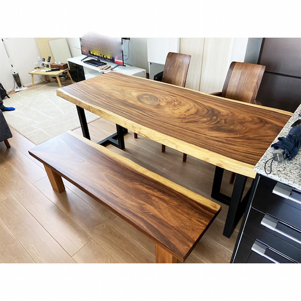 ベンチはもともとは大きかった一枚板をカットして、テーブルに合う長さにしました。