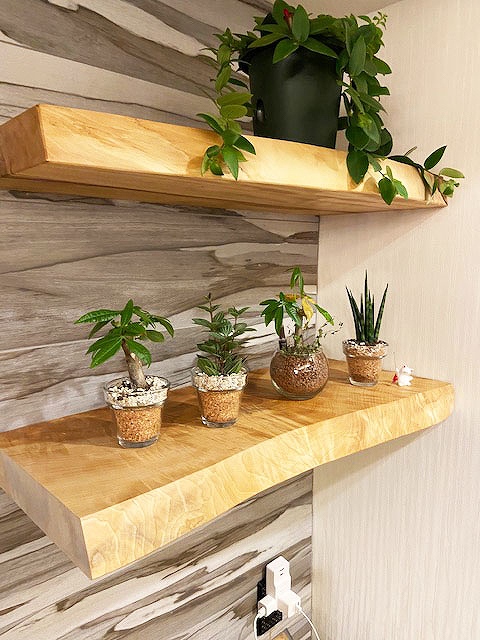 カットして残った端材も壁に埋め込んで棚を作成しました。