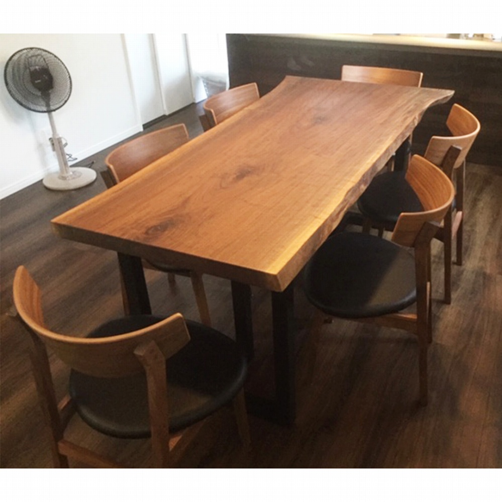 ボリューム感のある一枚板に黒いアイアンの角脚がとても相性が良いです。
