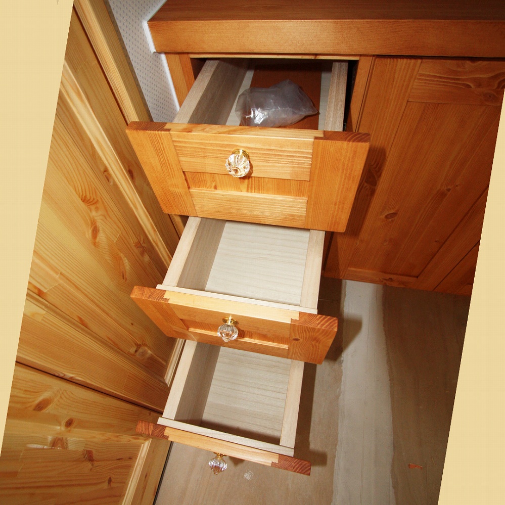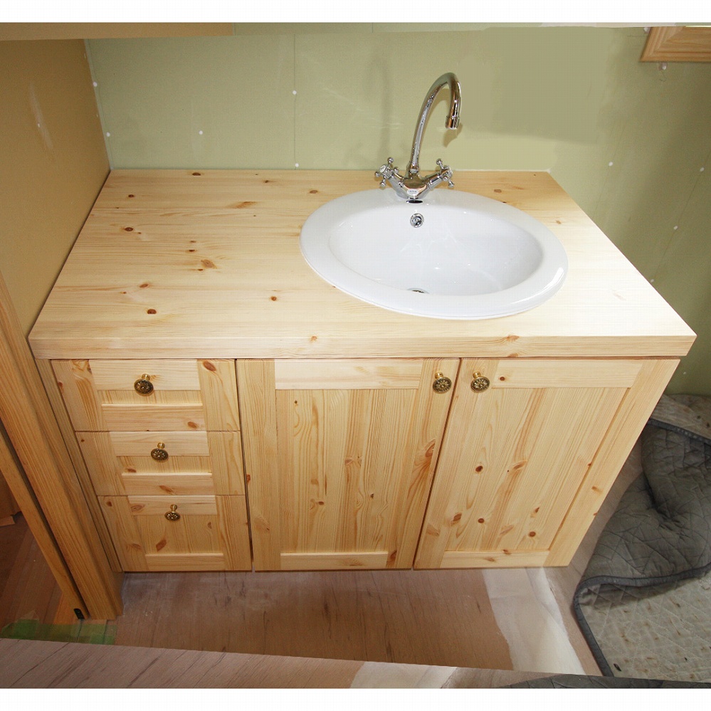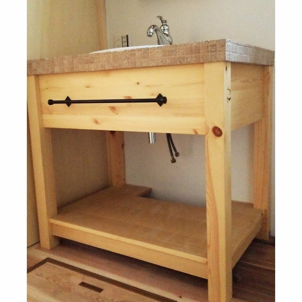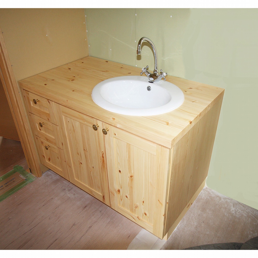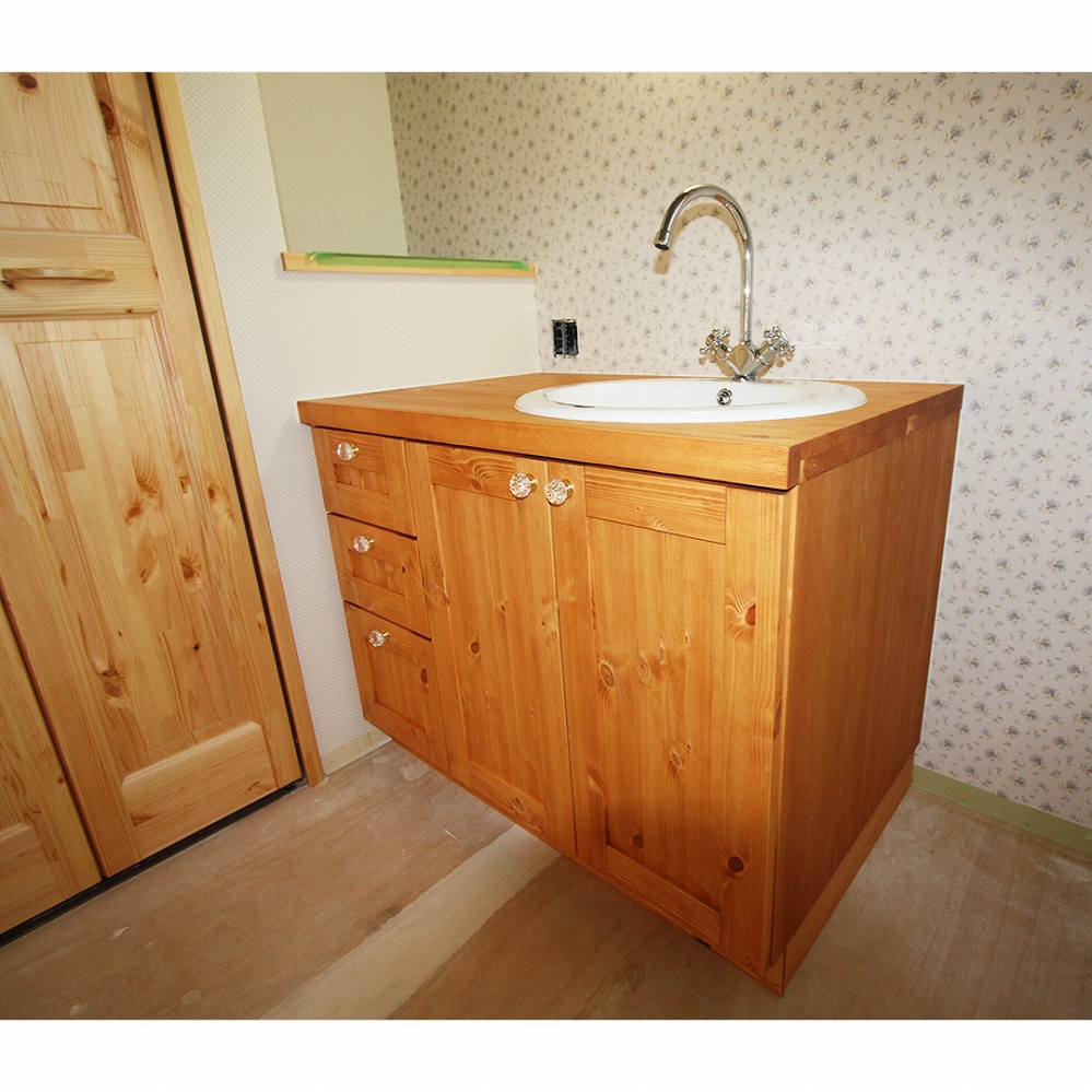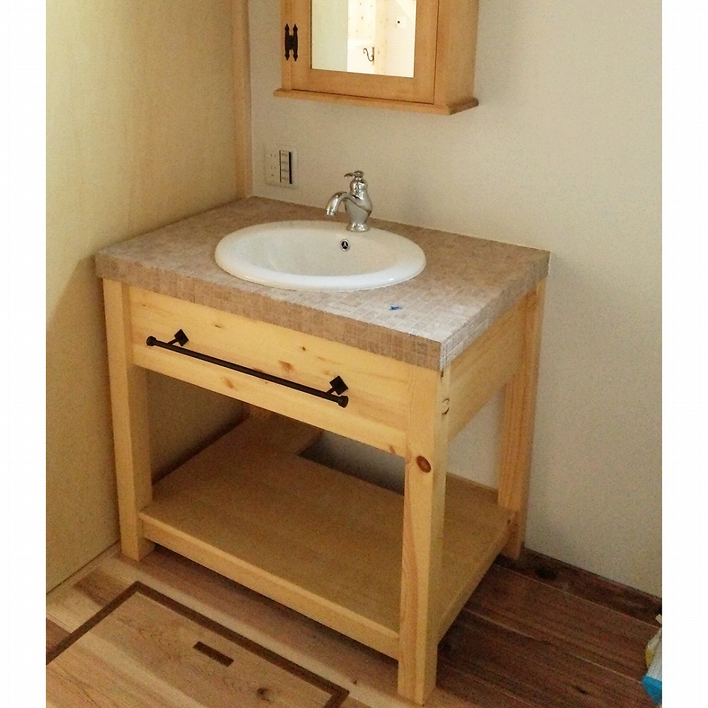 温かみのあるパイン材でのスケルトン洗面台です。