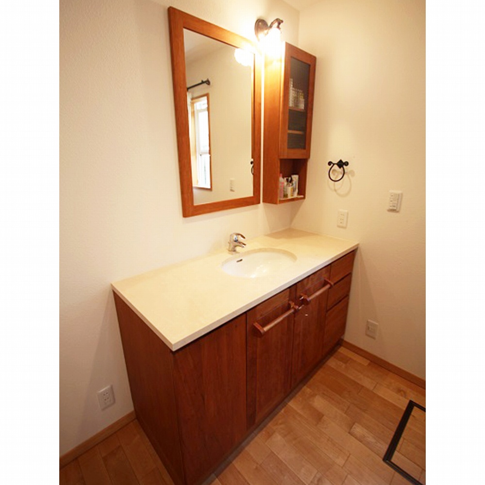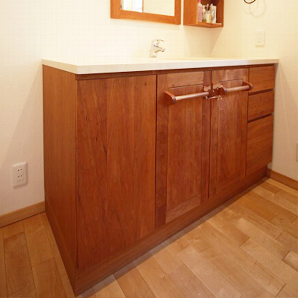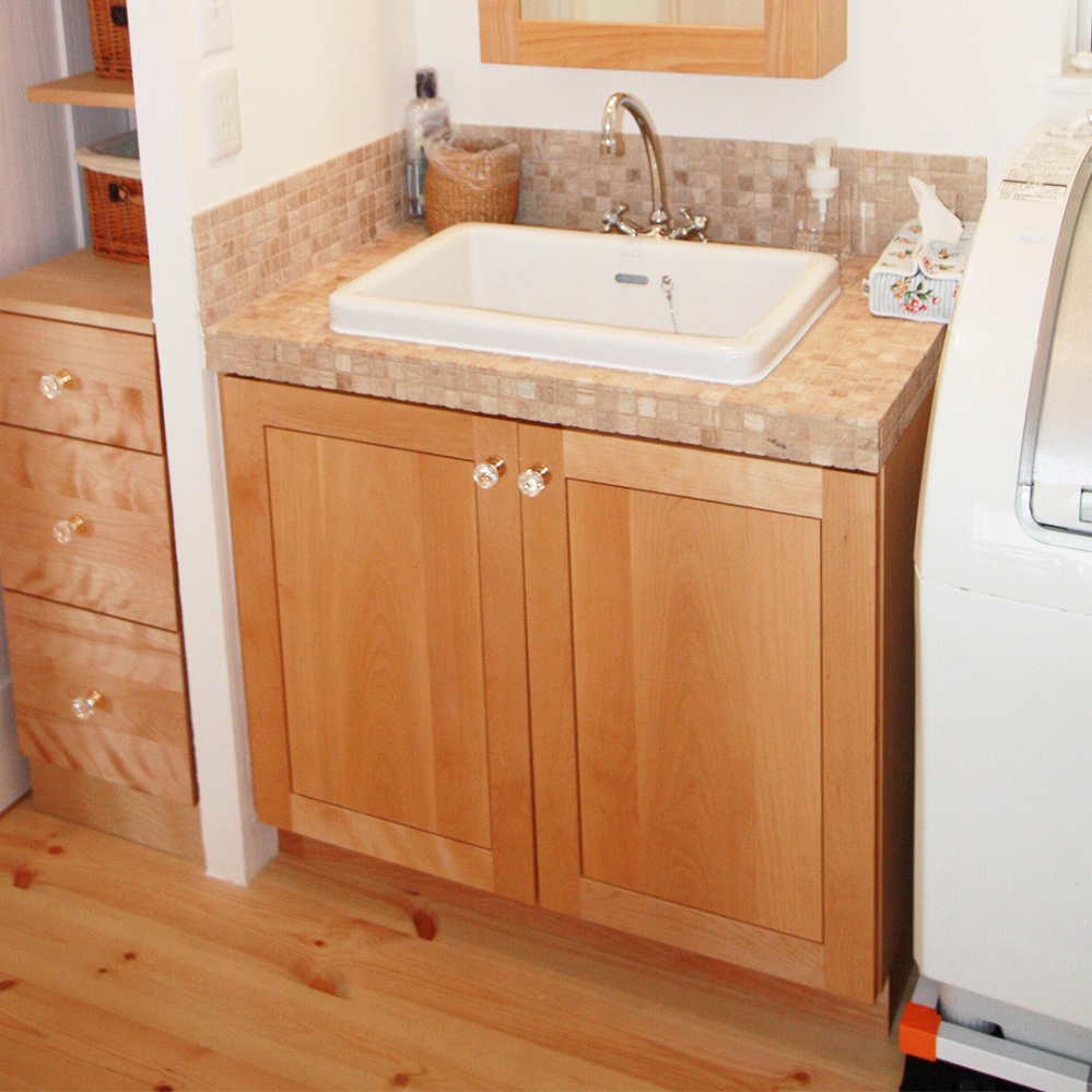 カバ桜の明るい印象の洗面台です。