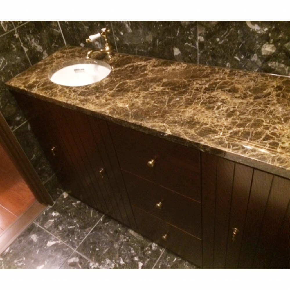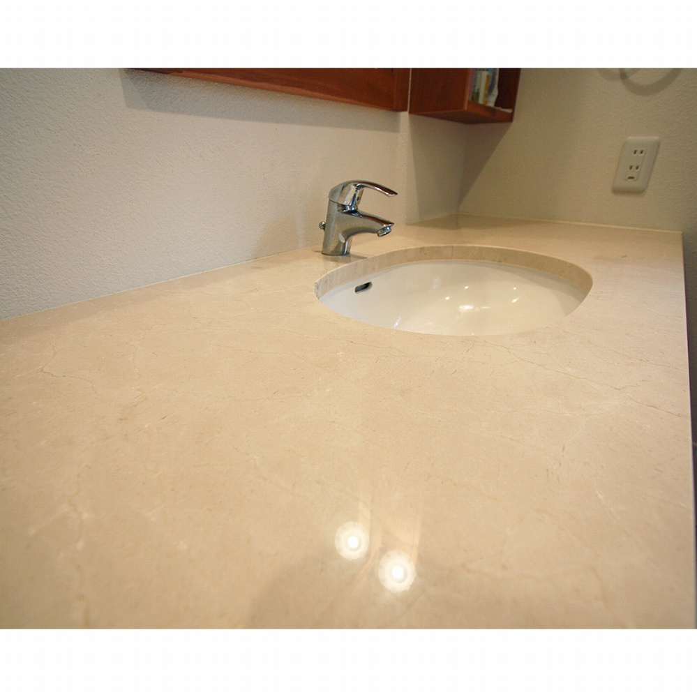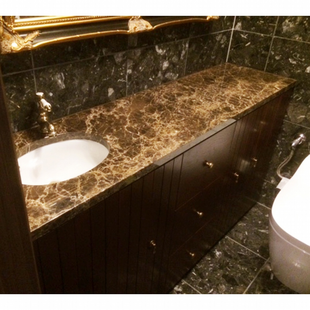 ブラックチェリーの洗面台には、とっても上品な白い天然大理石の天板が。