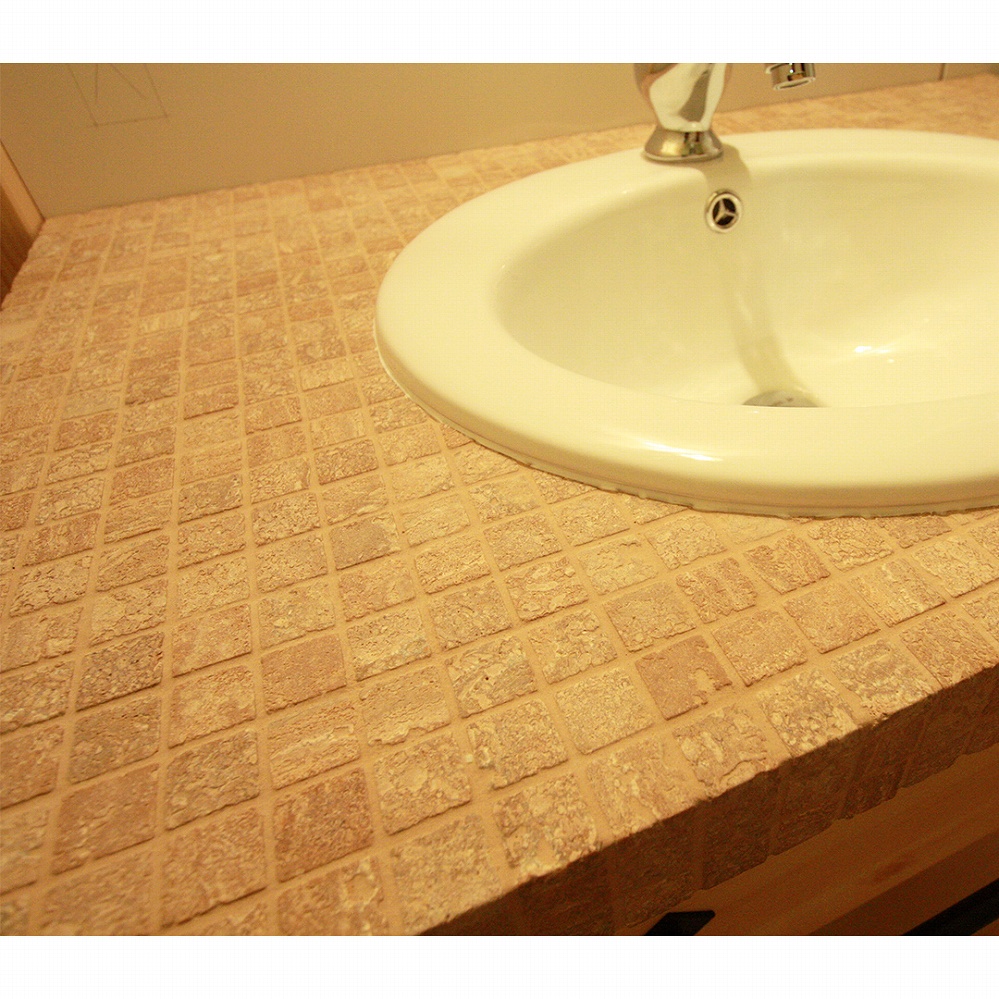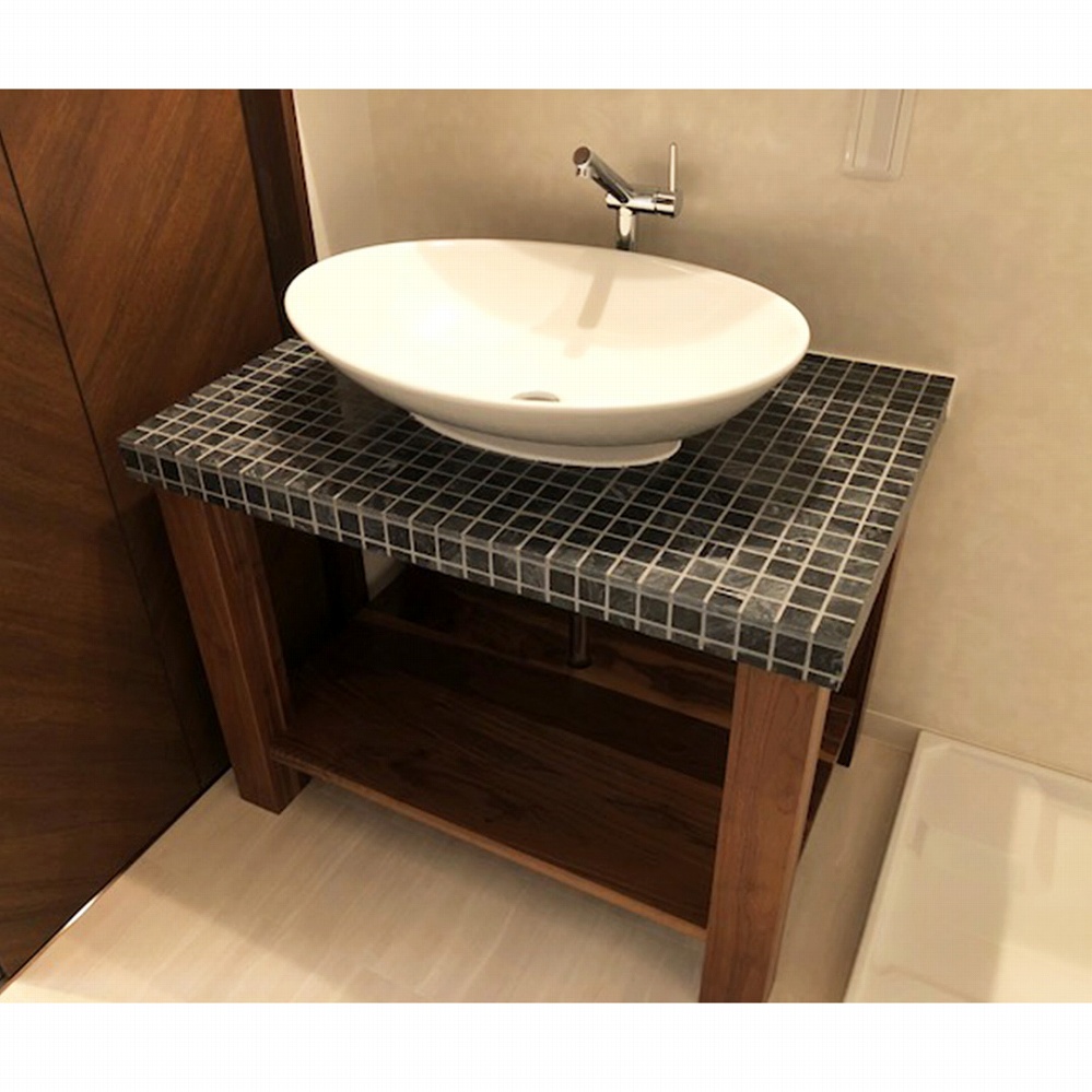 天板はモザイク石タイルに仕上げました。よりナチュラルなイメージになりますね。