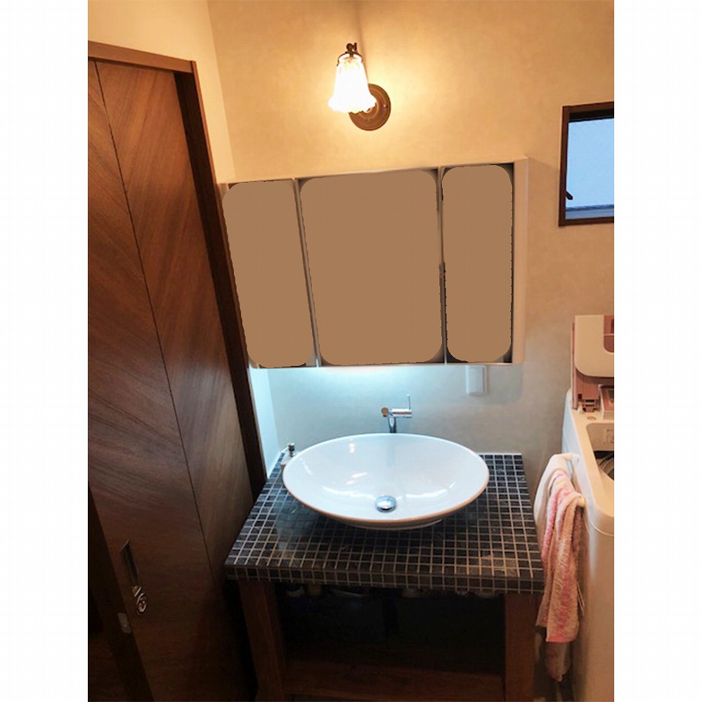 天然のモザイク石タイルを巻いた天板がとてもオシャレな洗面台をお届けさせていただきました。