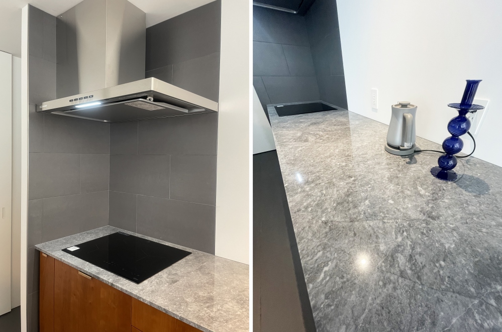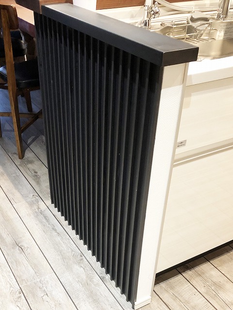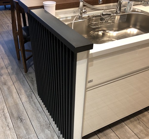 そしてキッチンの側面や背面はあえて無骨なアイアンの黒を巻いて異素材の格好良さを出しています。