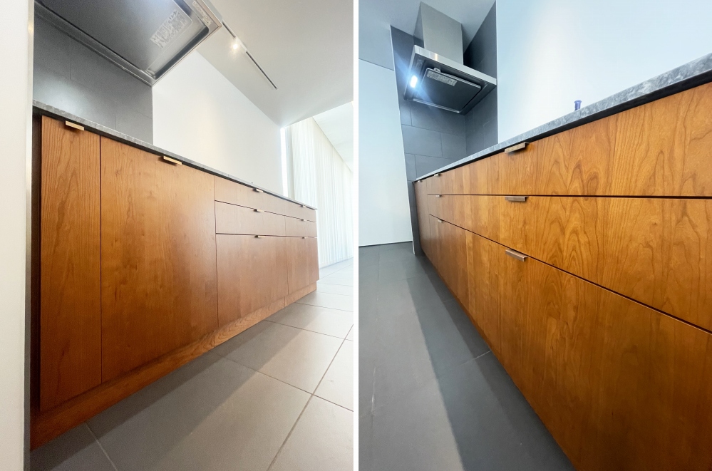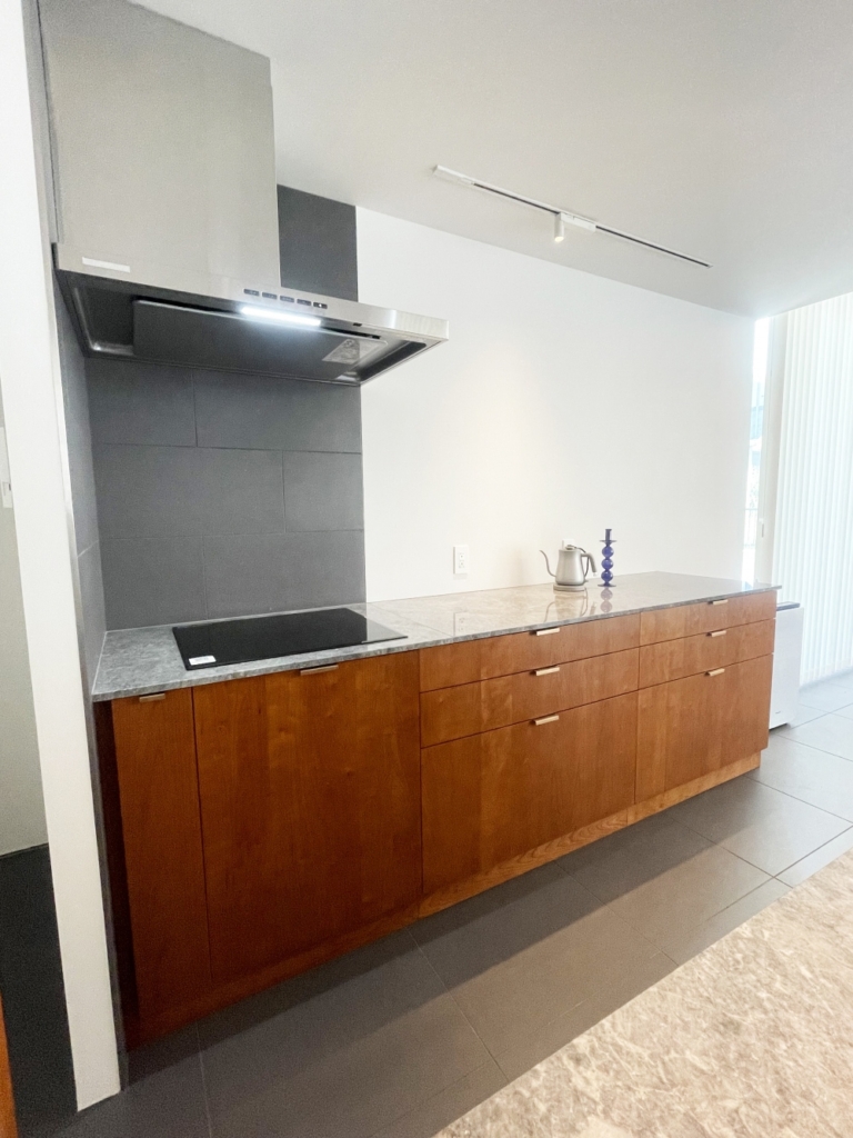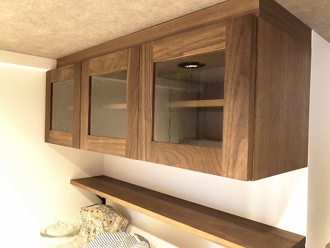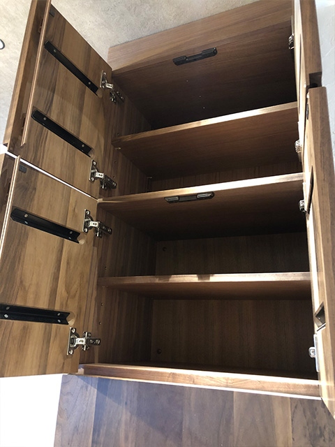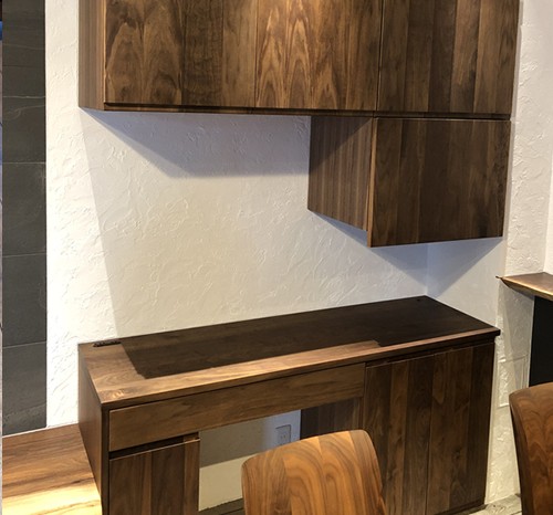 新築マンションのリフォームとして、ウォールナット材のバックキャビネットを施行しました。