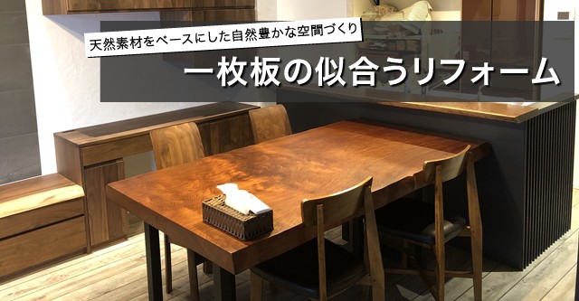 Kan Nakayaでは、一枚板に合う自然素材を活用したリフォーム・リノベーションのご提案も行っております。