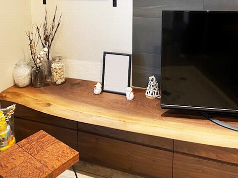 何より天板の一枚板のカーブが格好良く、美しい木目や色合いが見ていて飽きません。